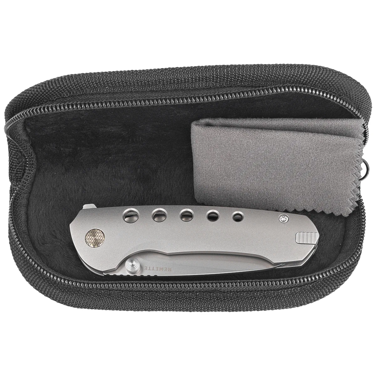 - RT-BEE-T w/Titanium Toothpick Gray Titanium, Hand Pearlescent kompaktowy nóż składany EDC. Głownia spear point ze stali Böhler M390, szybka płetwa Flippera do otwierania oraz rękojeść z tytanu. Ukryta, tytanowa wykałaczka!