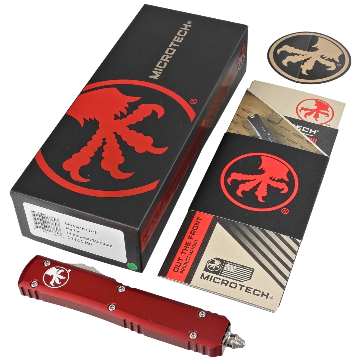 Nóż automatyczny OTF Microtech Ultratech D/E Merlot Red Aluminium, Stonewashed M390 by Tony Marfione (122-10MR)