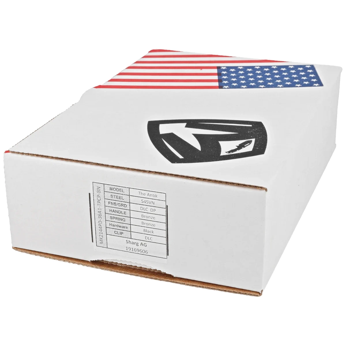 - The Antik Drop Point, Bronze Titanium, Black HW, DLC Clip, Black DLC, elegancki, lecz wciąż mocny nóż składany od Medford Knife & Tool. Sprawdzona stal CPM S45VN, ergonomiczna rękojeść z tytanu. Podręczny towarzysz codziennego życia!