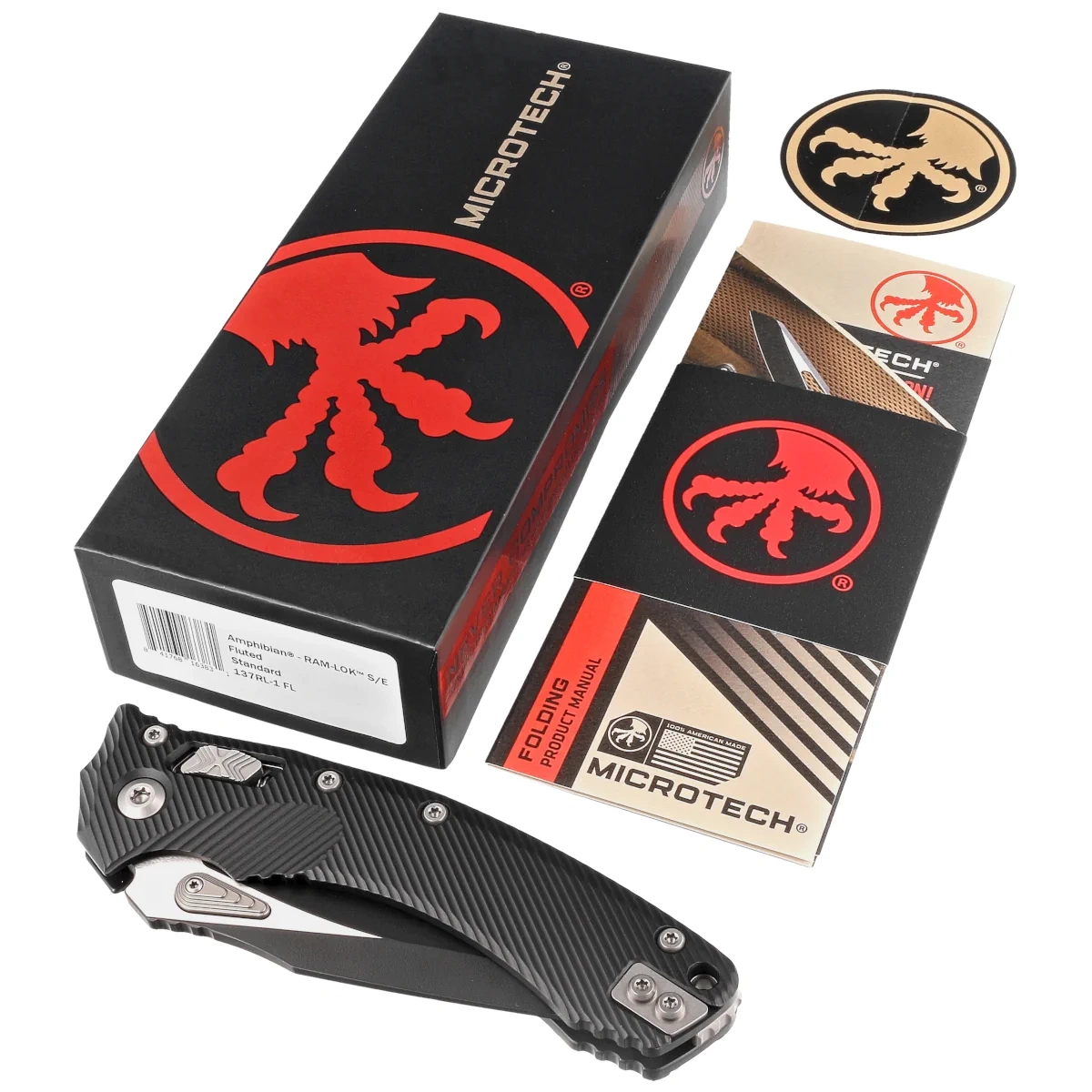 - Amphibian Ram-Lok Fluted Black Aluminium, Black reedycja noża składanego z intuicyjną blokadą RAM-Lock. Doskonała stal ostrza M390MK, efekt współpracy inżynierów firm Microtech i Bohler. Ergonomiczna rękojeść. Projekt Anthony Marfione!
