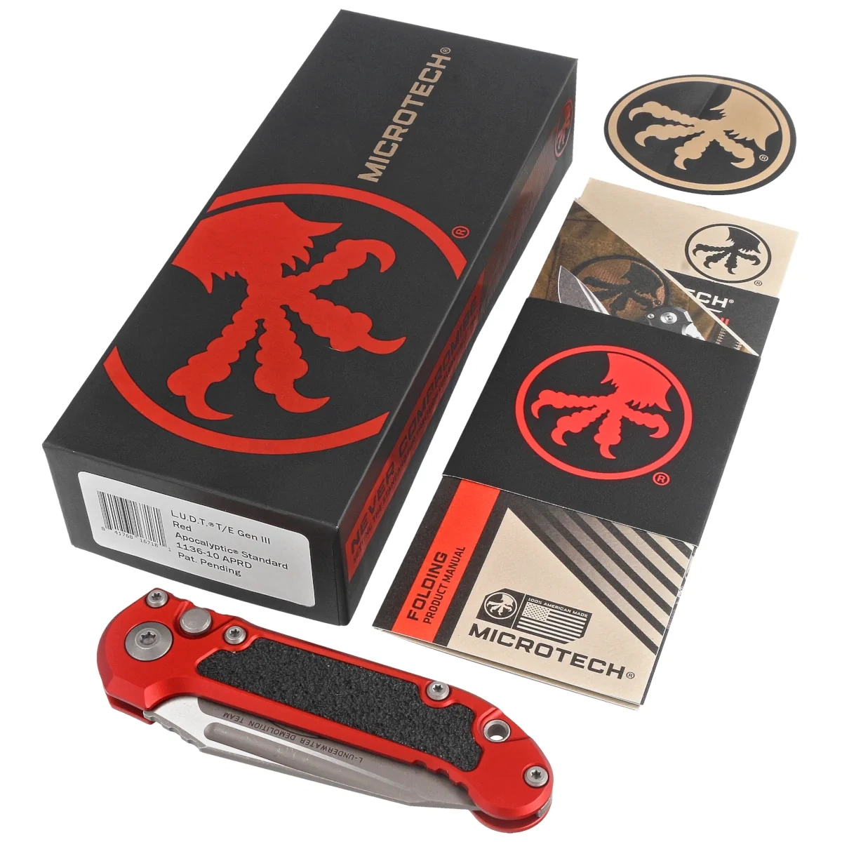 Nóż automatyczny Microtech LUDT Gen III T/E Red Aluminium, Apocalyptic M390MK by Tony Marfione (1136-10APRD)
