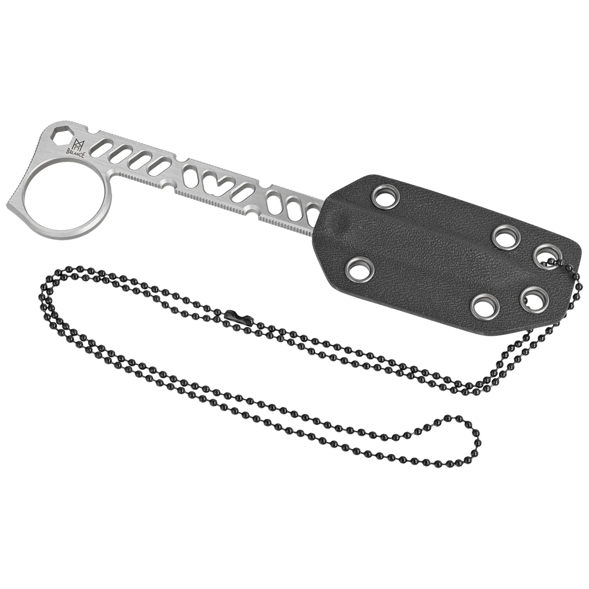 Pochwa - przy projektowaniu duży nacisk położono na łatwość przenoszenia oraz dobywania noża. Wykonana z tworzywa Kydex. W komplecie z łańcuszkiem kulkowym umożliwiającym zawieszenie jej na szyi.