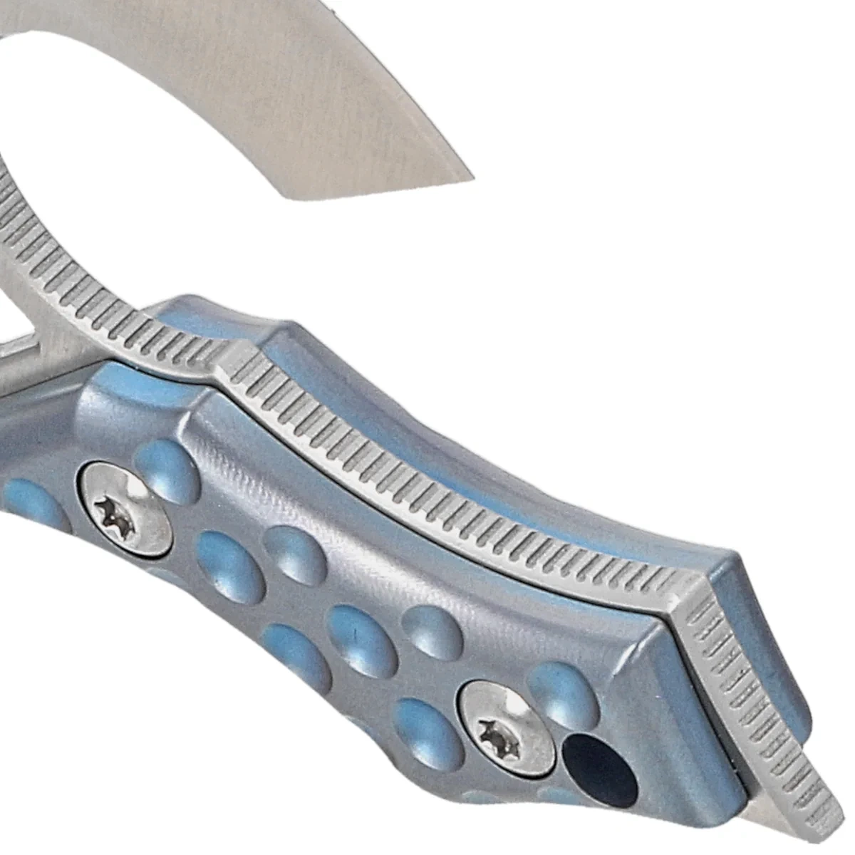 - Nori Nano Blue Titanium, Satin, wzorowany na stylistyce wikińskich toporów podręczny nóż ze stałym ostrzem. Wygodna rękojeść z tytanu zapewnia pewny chwyt w każdym ułożeniu, głownia ze stali nierdzewnej Sandvik 14C28N. Innowacyjna pochwa z magnesami.