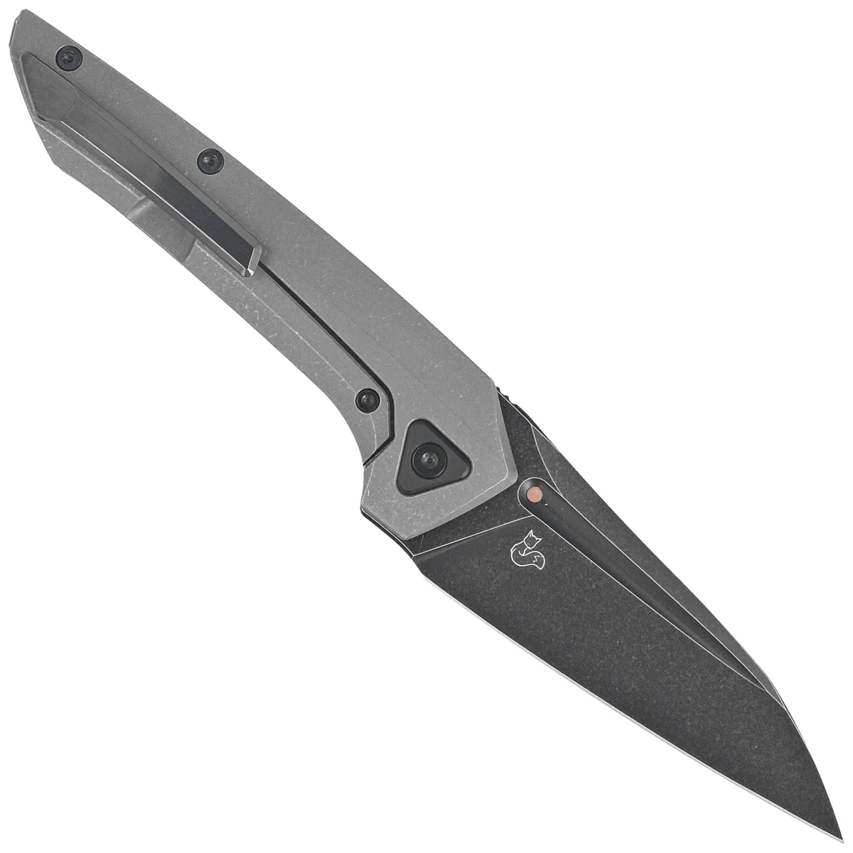 Głownia - typu Wharncliffe wykończona maskującą rysy kąpielą w drobnych kamykach Stonewashed a następnie pokryta czarną powłoką. Otwierana za pomocą front flippera (index front flipper), dzięki czemu mogą z niego bez problemu korzystać osoby prawo i leworęczne. Za gładką pracę mechanizmu otwierającego odpowiadają ceramiczne łożyska kulkowe. Niewielka grubość klingi w połączeniu z wysokim, płaskim szlifem (Flat Grind) daje doskonałą geometrię krawędzi tnącej oraz ekstremalną wydajność cięcia. Całość blokowana jest sprawdzoną i popularną blokadą frame lock ze stalową wkładką zabezpieczającą przed wycieraniem czoła blokady. Przy rękojeści inlay w postaci kropki wykonanej z miedzi, charakterystycznego znaku Vulpex Knives.