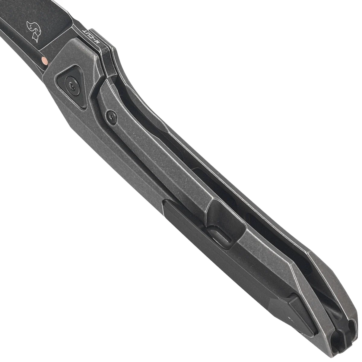 Rękojeść - lity tytan 6AL4V w kolorach czerni i brązu, połączone ze sobą masywnym tytanowym backspacerem. Prostota i solidność konstrukcji dają pewność wieloletniego użytkowania. Oś piwota została umieszczona wewnątrz trójkątnej wkładki ze stali. Klips jednopozycyjny (prawa), wykonany z tytanu, umożliwia przenoszenie noża w pozycji tip-up.