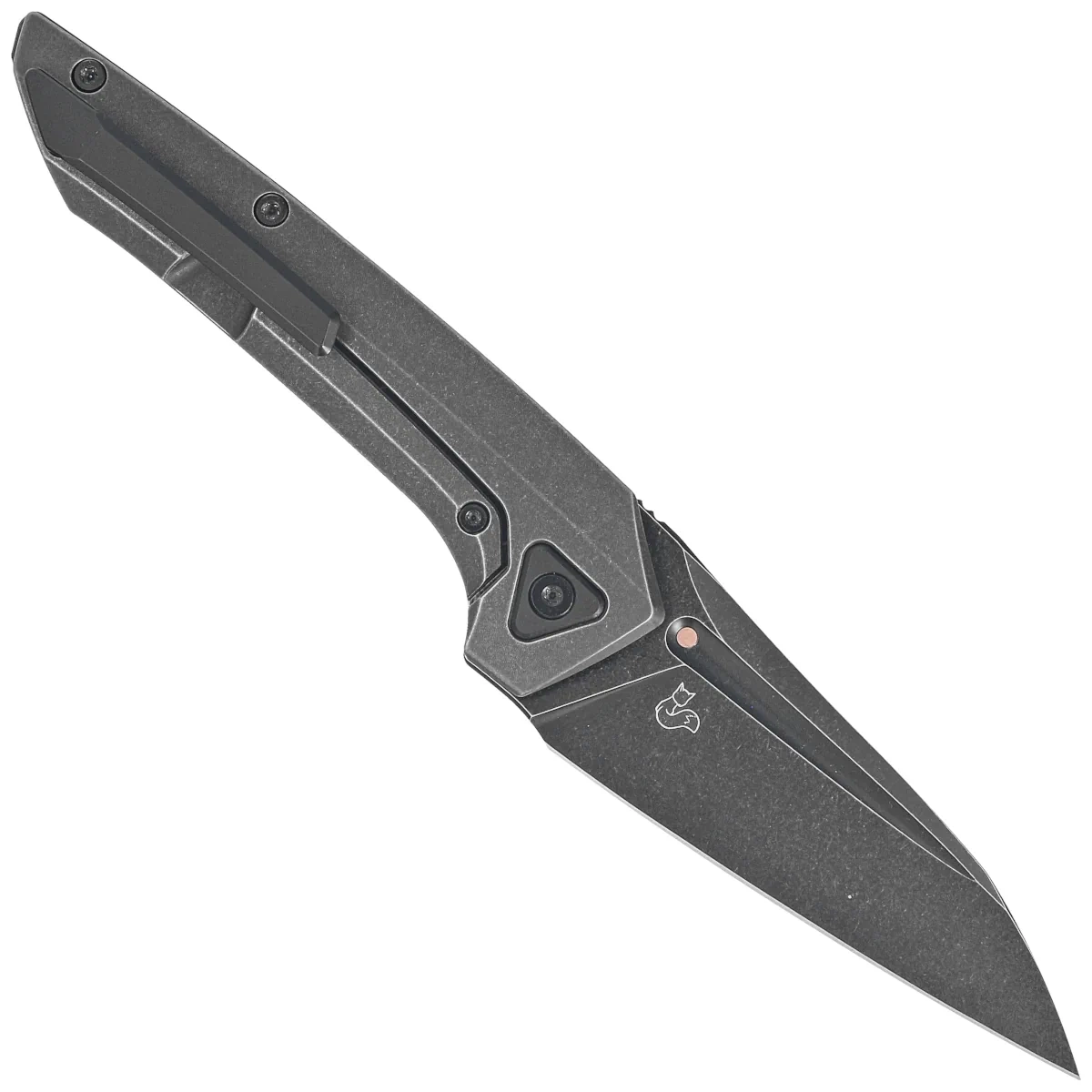 Głownia - typu Wharncliffe wykończona maskującą rysy kąpielą w drobnych kamykach Stonewashed a następnie pokryta czarną powłokąOtwierana za pomocą front flippera (index front flipper), dzięki czemu mogą z niego bez problemu korzystać osoby prawo i leworęczne. Za gładką pracę mechanizmu otwierającego odpowiadają ceramiczne łożyska kulkowe. Niewielka grubość klingi w połączeniu z wysokim, płaskim szlifem (Flat Grind) daje doskonałą geometrię krawędzi tnącej oraz ekstremalną wydajność cięcia. Całość blokowana jest sprawdzoną i popularną blokadą frame lock ze stalową wkładką zabezpieczającą przed wycieraniem czoła blokady. Przy rękojeści inlay w postaci kropki wykonanej z miedzi, charakterystycznego znaku Vulpex Knives.