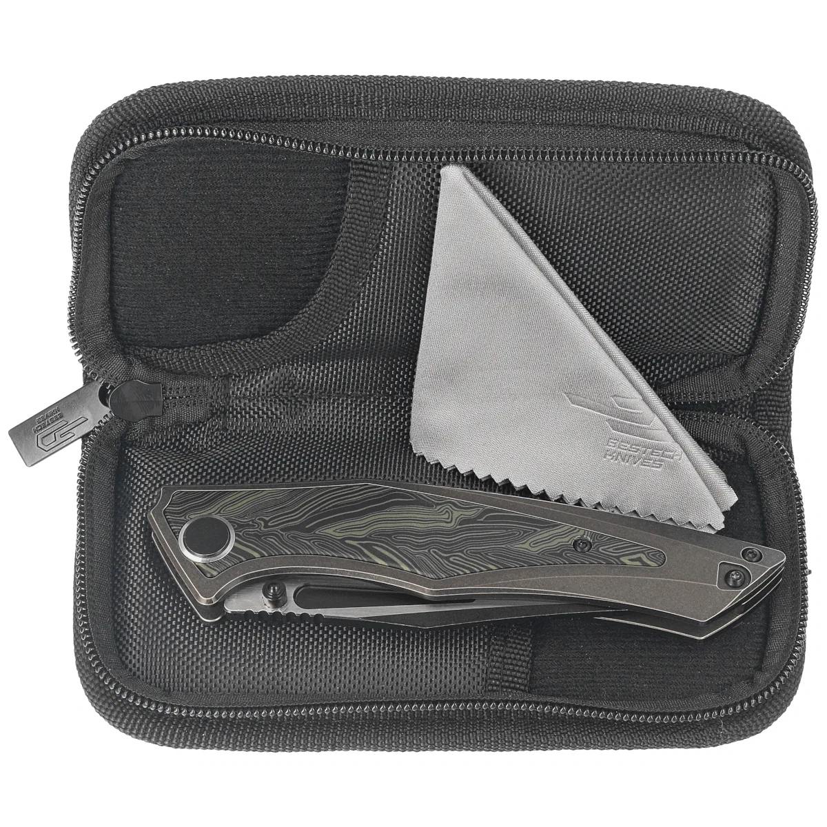 Nóż składany Bestech Togatta Bronze Titanium/Black-Green G10, Black Stonewashed/Satin M390 by Koens Craft (BT2102E)