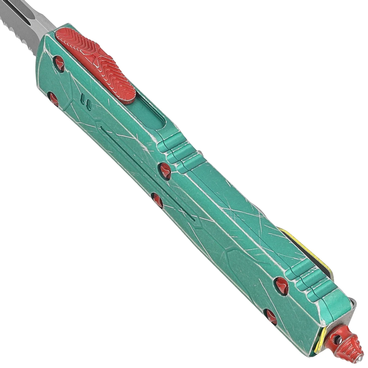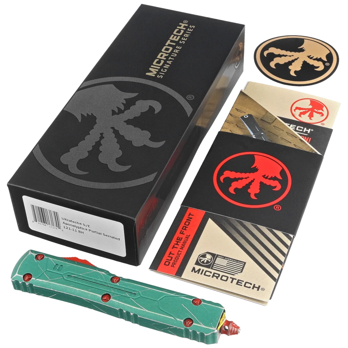 Nóż automatyczny OTF Microtech Ultratech S/E Bounty Hunter Signature Distressed Green Aluminium, Apocalyptic P/S M390 by Tony Marfione (121-11BH)