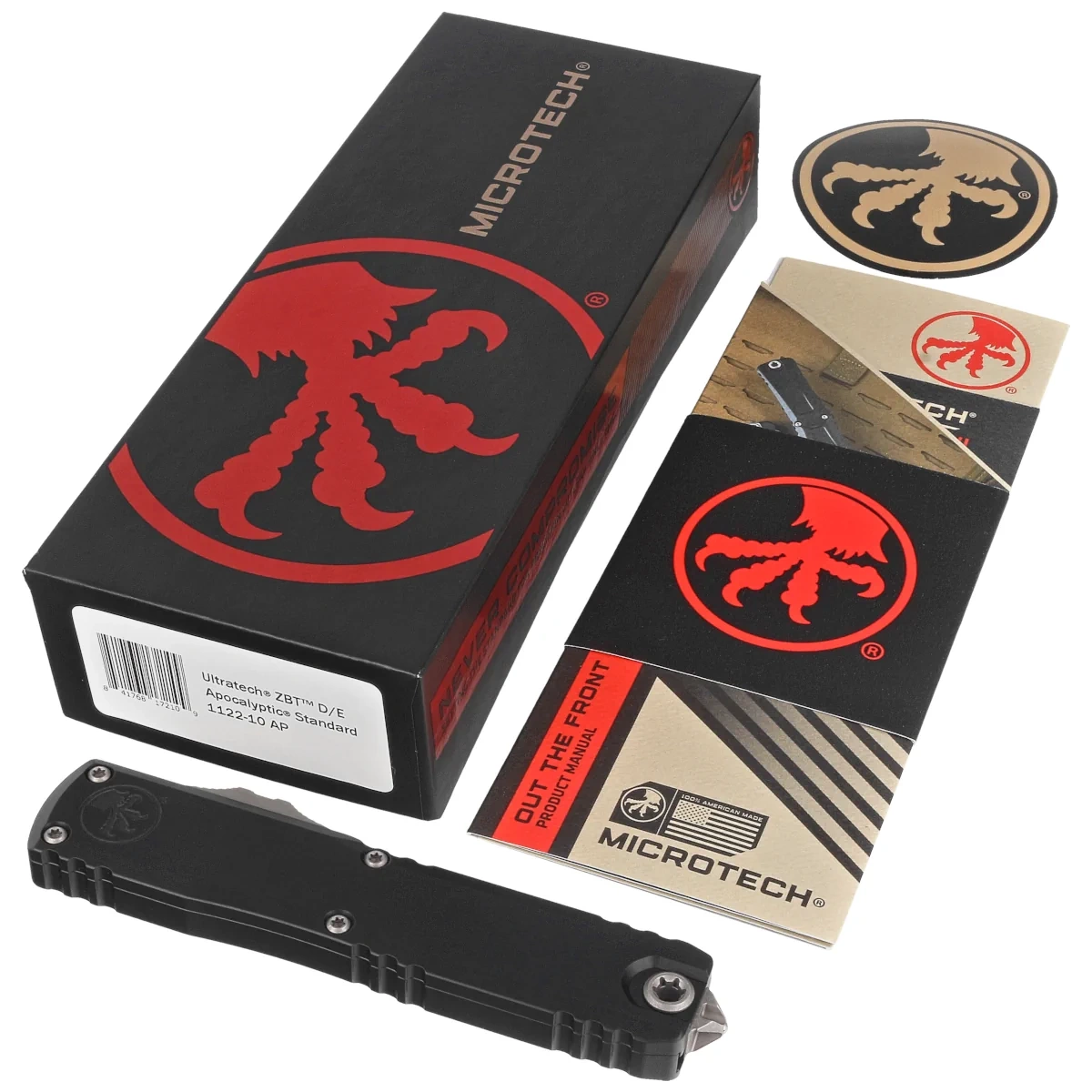 Ultratech Gen III ZBP D/E Black Aluminium, Apocalyptic to nowa odsłona serii Ultratech - pierwszy nóż OTF firmy Microtech bez jakiegokolwiek luzu ostrza po jego rozłożeniu! Automat z ostrzem "blade play free" wyróżnia się szeregiem usprawnień, takich jak; Crud Kutter™, Dual-Fuel Drive Train™, Zero Blade Play™. Przeprojektowano również rękojeść, wyposażając ją w rozwiązania znane z innych modeli. Pracujący w trybie D/A (Double Action), umożliwia błyskawiczne wysunięcie i schowanie ostrza za pomocą jednego ruchu kciuka. Projekt autorstwa Tony’ego Marfione, właściciela Microtech Knives, łączy w sobie nowoczesny design z najwyższą jakością wykonania