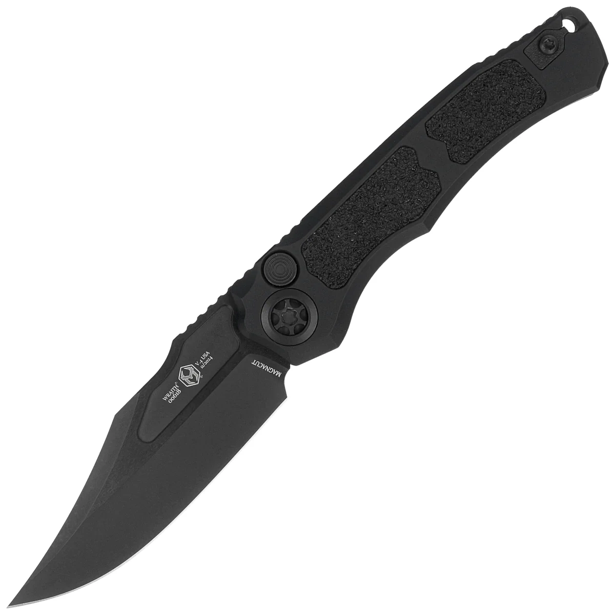 Wraith V4 Auto Tactical Black DLC Aluminium/3M, Black DLC to potężny nóż automatyczny typu switchblade z serii Wraith-A w wersji Tactical. Wykorzystuje działający z ogromną siłą i mocą, sprężynowy mechanizm rozkładający ostrze, wyróżniając go na tle innych noży. Wyposażony w ostrze ze stali MagnaCut pokryte matowym, czarnym wykończeniem DLC i aluminiową rękojeść z czarną wkładką trakcyjną, łączącą lepszą przyczepność z wyrafinowaną elegancją. Zaprojektowany z myślą o wydajności w pracy, łączy w sobie elegancję i funkcjonalność. Precyzja wykonania, jakość materiałów czynią go nie tylko praktycznym narzędziem, ale także dziełem sztuki użytkowej. Bez względu na to, czy jesteś kolekcjonerem noży, czy szukasz niezawodnego narzędzia do codziennego użytku, Wraith Auto to nóż, który z pewnością przekroczy Twoje oczekiwania, to wyjątkowe doświadczenie, które na nowo definiuje, czym może być nóż automatyczny.
