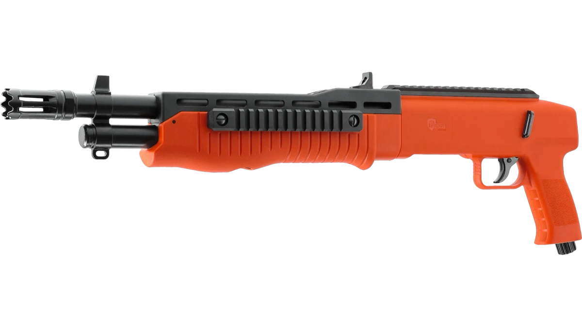 P2P HDB 68 to kompaktowa strzelba RAM kalibru .68, zasilana kapsułą CO₂ 12 g. Wyposażona w system szybkiego przebicia kapsuły, mechanizm przeładowania pump-action, szyny montażowe Picatinny oraz pojemny magazynek mieszczący aż 16 kul. Model w pomarańczowej wersji kolorystycznej ułatwia szybką lokalizację broni w sytuacjach stresowych, zapewniając większą gotowość do obrony.