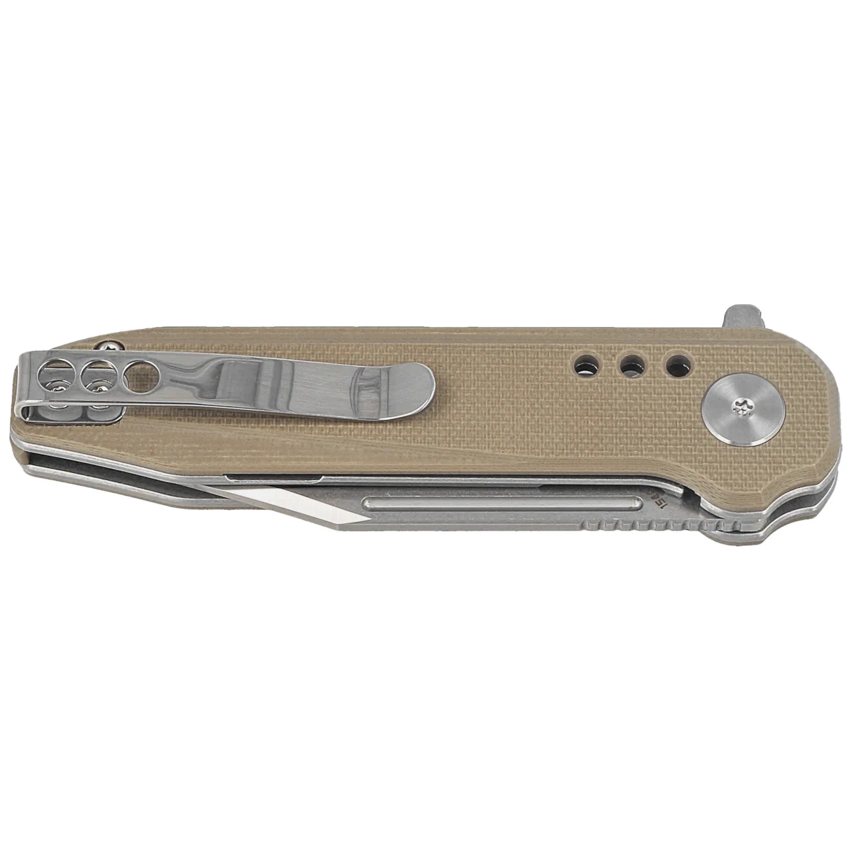 - Syntax Beige G10, Stonewashed/Satin nóż EDC, kolejny z nietuzinkowych projektów braci Setha i Teryla Toddów z TKT. Ich unikalny styl wzornictwa ma charakterystyczny industrialny wygląd i wiele eleganckich linii. W uchwycie często znajdują się 3 otwory.