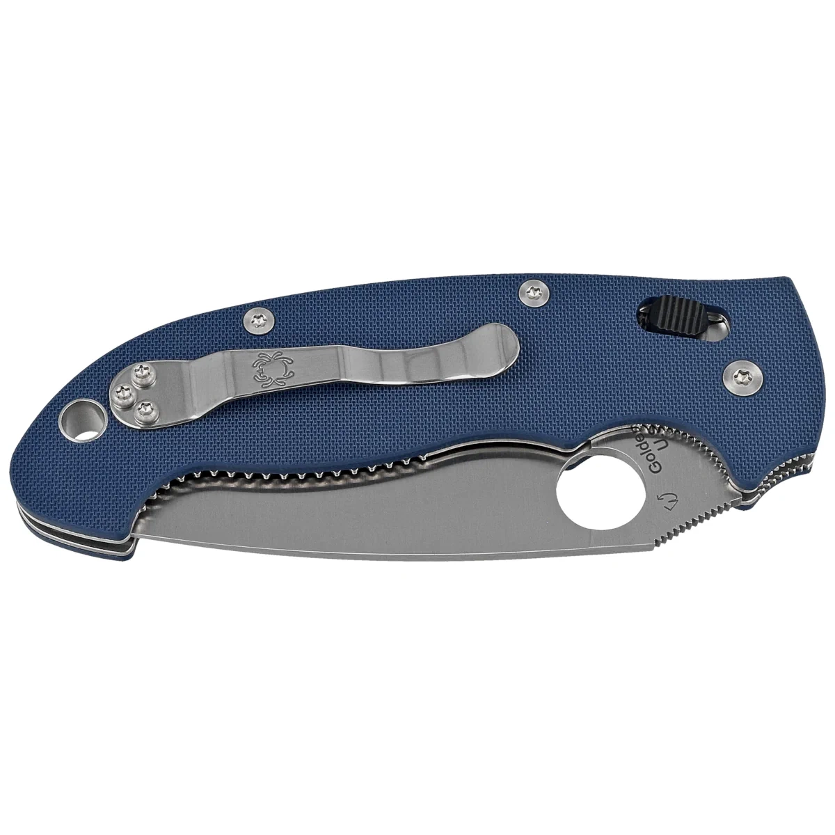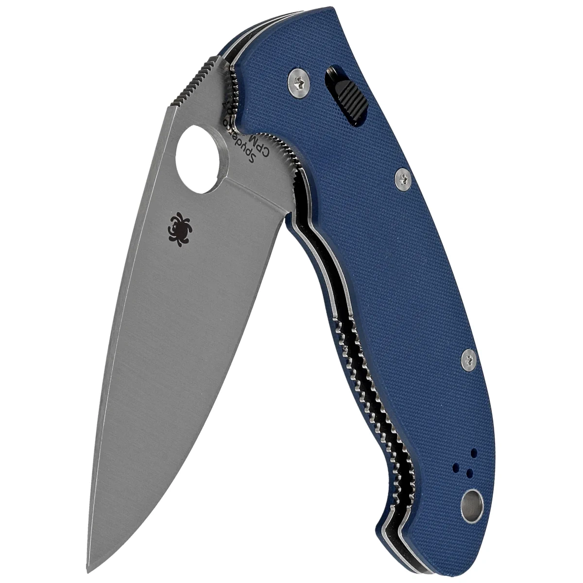 Głownia - ostrze gładkie Plain wyprowadzone szlifem płaskim pełnym (Full Flat Grind). Powiększone 14 mm okrągłe wycięcie SpyderHole (patent Spyderco) do oburęcznego otwierania kciukiem. Dopracowany, precyzyjnie obrobiony mechanizm blokady głowni Ball Bearing-Lock gwarantuje niezwykłą płynność działania. Karbowane oparcie pod kciuk (upper jimping) na grzbiecie klingi oraz Finger Choil (podcięcie pod palec wskazujący między rękojeścią a krawędzią tnącą) ułatwiają panowanie nad nożem.