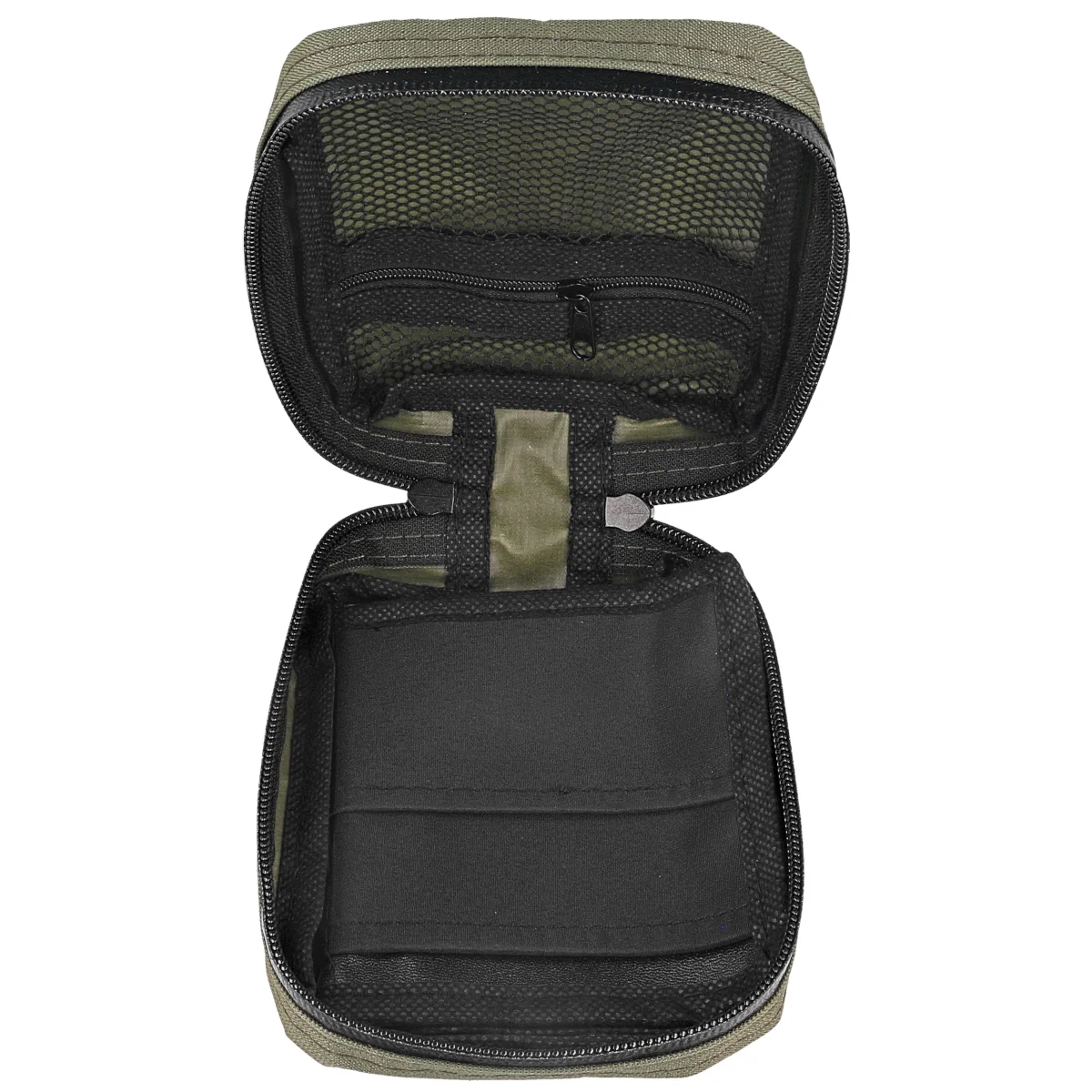 Kompaktowa apteczka pierwszej pomocy – wyposażona w podstawowy zestaw opatrunkowy, umieszczony w wytrzymałej torbie wykonanej z nylonu Rip-Stop z wodoodporną powłoką PU. Niezastąpiona podczas wypraw outdoorowych, survivalu, biwaków i w codziennym użytkowaniu.