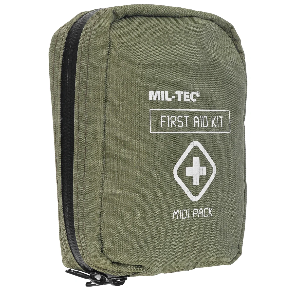 - Mil-Tec apteczka pierwszej pomocy – kompaktowa, wodoodporna i dobrze zorganizowana. Wyposażona w niezbędne środki opatrunkowe, mocowanie MOLLE/PALS. Idealna na survival, camping i podróże!