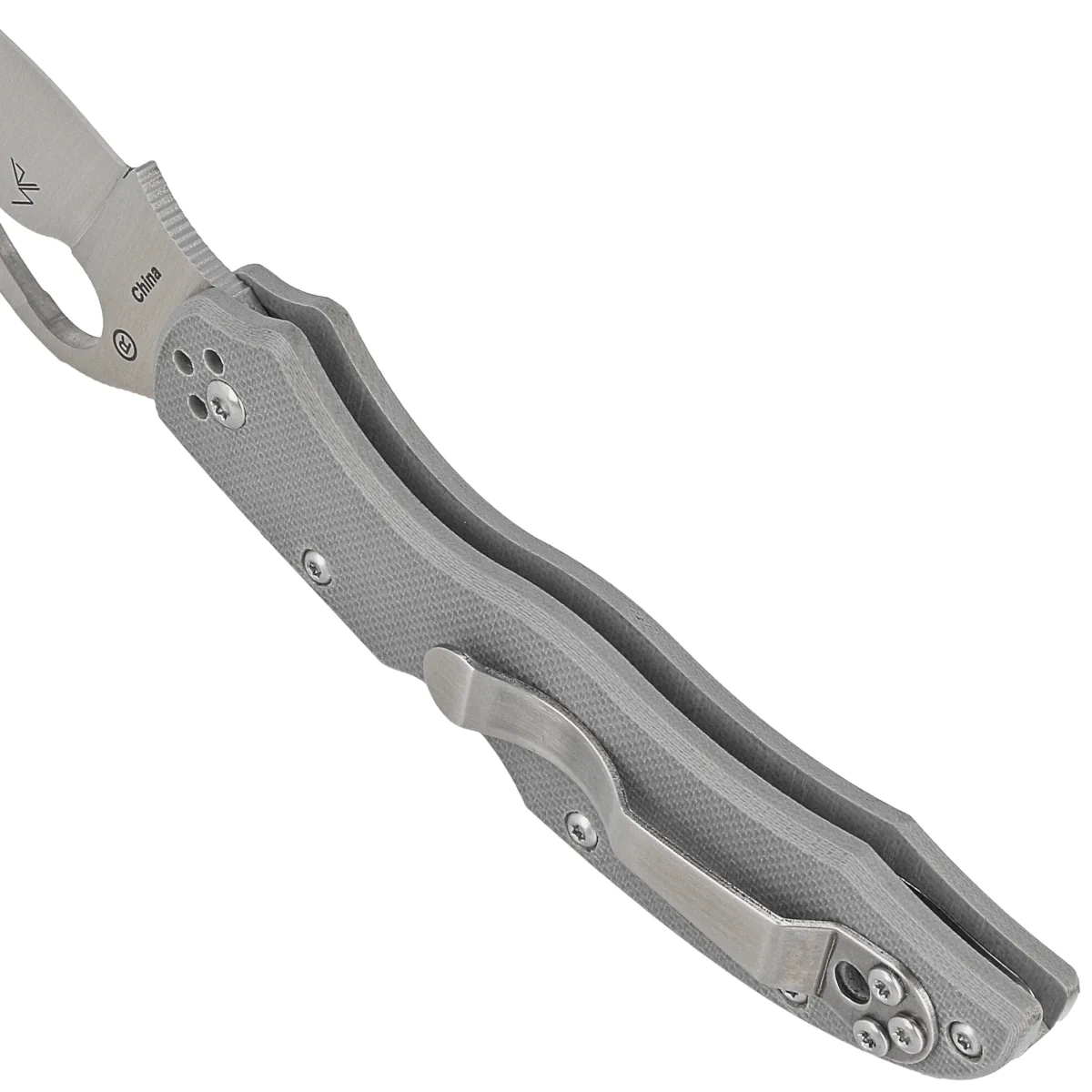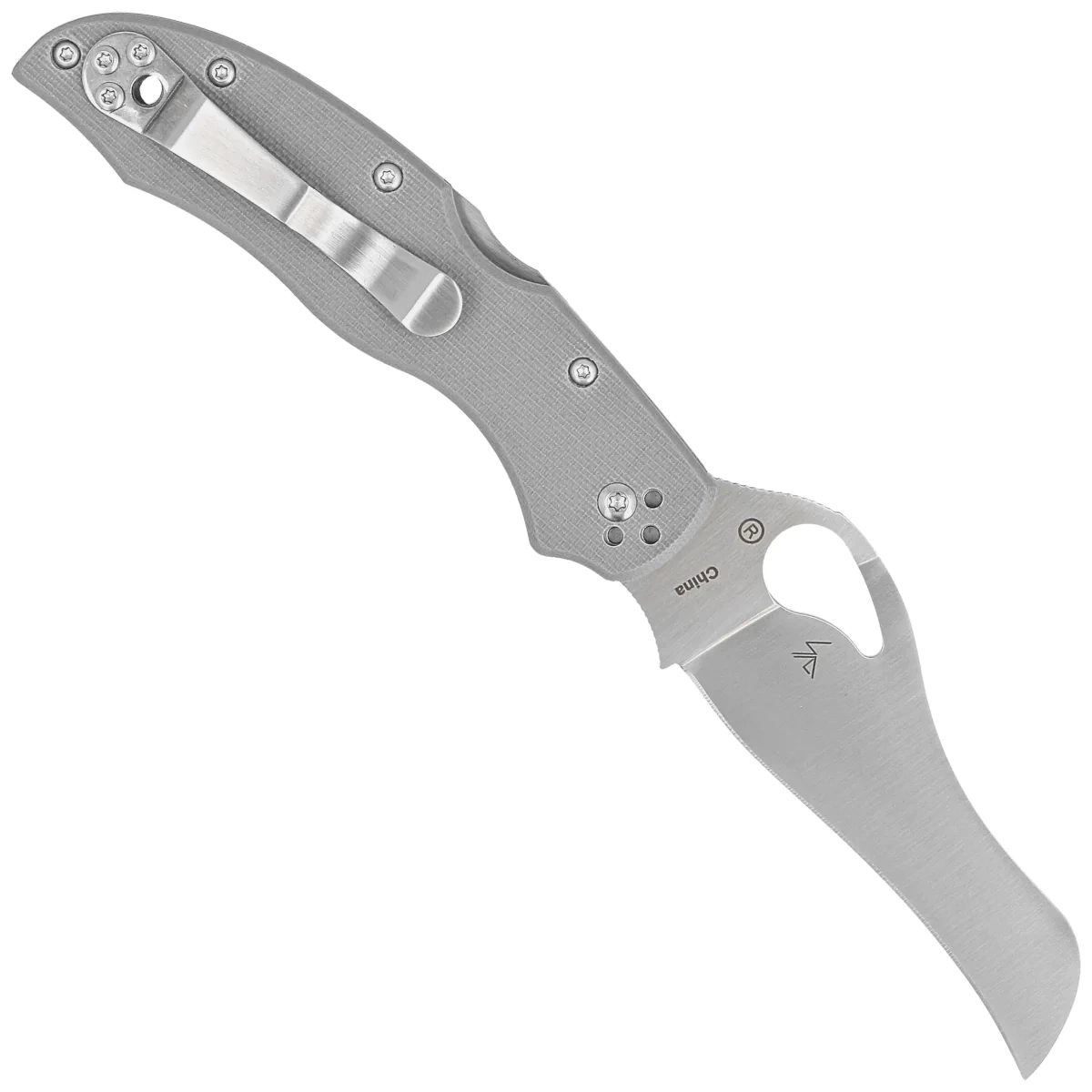 - Gooney Gray G10, Satin niezwykłe połączenie profilu głowni sheepfoot, hawkbill i patentu Spyderco, odwróconej litery "S". W efekcie dostajemy bardzo uniwersalną klingę o znakomitych właściwościach tnących. Okładziny z wytrzymałego kompozytu G10.