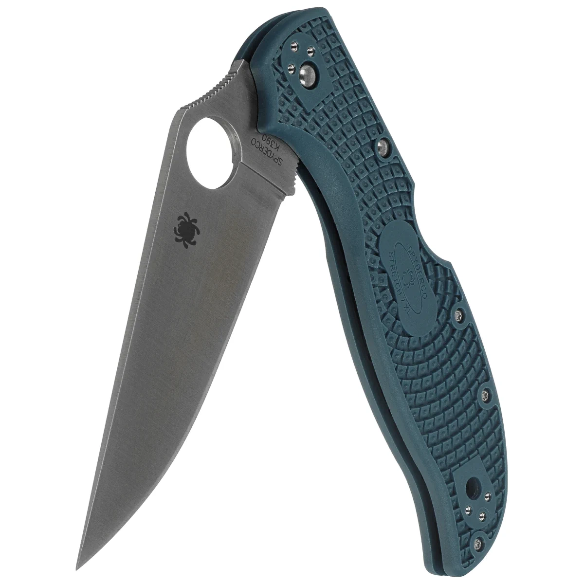 Stretch 2 XL Lightweight Blue FRN, Satin to udoskonalona wersja popularnego foldera o znakomitej ergonomii i najlepszych właściwościach tnących. Zaprojektowany, aby sprostać wymaganiom w terenie, spełniając funkcję wszechstronnego noża survivalowego czy myśliwskiego cenionego za swój rozmiar, lekkość noszenia i łatwość użytkowania. Dla tych użytkowników firma Spyderco wprowadziła lekką wersję Stretch 2 XL z ostrzem ze stali K390 i formowanymi wtryskowo okładzinami z lekkiego i wytrzymałego kompozytu FRN w elitarnym niebieskim kolorze, zarezerwowanym dla noży z klingą ze stali K390 Microclean®. Projekt autorstwa Sala Glessera, założyciela firmy Spyderco.