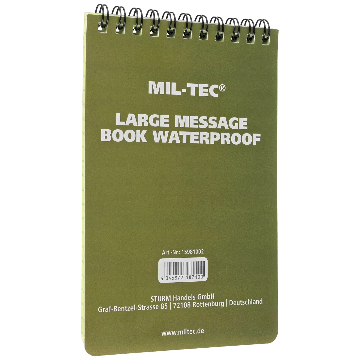 Notes wodoodporny Mil-Tec Message Book Waterproof Large – profesjonalny notatnik przystosowany do użytkowania w każdych warunkach pogodowych. Dzięki impregnowanym kartkom umożliwia zapisywanie i odczytywanie notatek nawet podczas deszczu, śnieżycy, a nawet pod wodą.