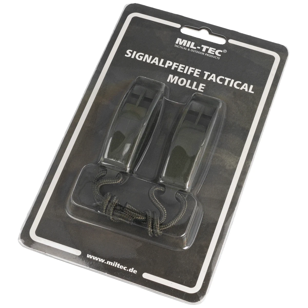 - Zestaw gwizdków Mil-Tec Signal Whistle – głośne, lekkie i wytrzymałe. Wykonane z polimeru Duraflex, odporne na warunki atmosferyczne. Łatwy montaż dzięki klipsowi i smyczy. Idealne do sytuacji awaryjnych.