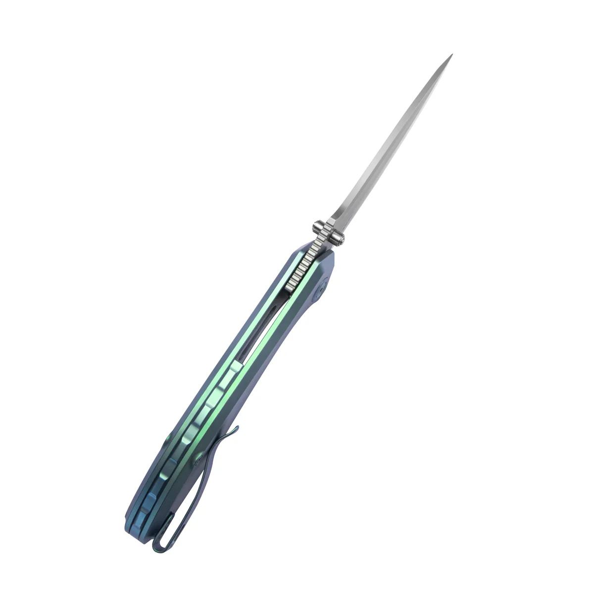 Ruckus Green Titanium, Beadblasted zaprojektowany przez Sherifa Manganasa, to kompaktowy folder EDC łączący precyzję wykonania z minimalistyczną elegancją. Głownia typu drop point, wykonana z doskonałej stali CPM 20CV, zapewnia wytrzymałość i długie trzymanie ostrosci. Rękojeść z tytanu 6AL4V zapewnia pewny chwyt nawet w trudnych warunkach, a ergonomiczny profil dostosowuje się do dłoni. Otwieranie możliwe jest za pomocą kołka w klindze lub front flippera, co zapewnia płynną i intuicyjną obsługę jedną ręką. Mechanizm blokady liner lock gwarantuje bezpieczeństwo użytkowania. To przemyślana konstrukcja o bezkompromisowej jakości, idealna na co dzień.