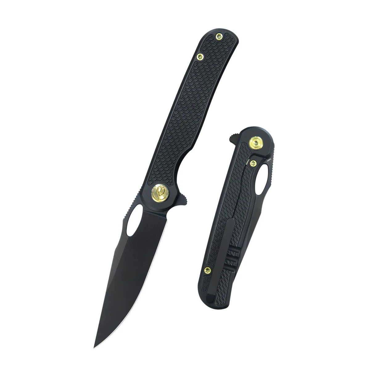 - Hydro Black Titanium, Black DLC kompaktowy folder EDC z warsztatu Marka Pereza. Głownia z doskonałej stali Böhler M390, rękojeść z tytanu z charakterystyczną fakturą w diamenty. Otwierany flipperem lub otworem w klindze. Bezpieczna blokada frame lock.