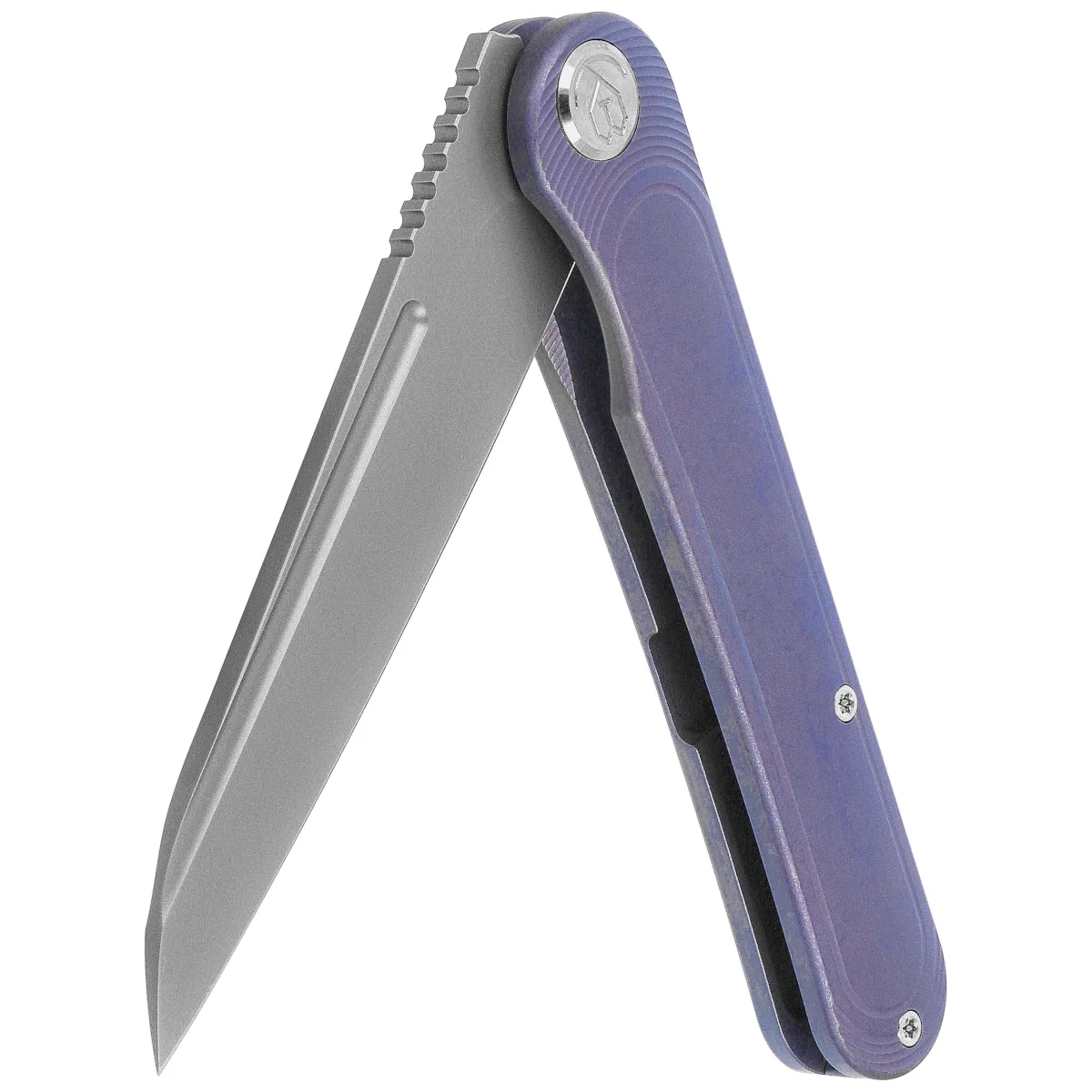Dandy Blue Titanium, Sandblasted to wyjątkowy folder w stylu gentleman’s, zaprojektowany przez Maksima Tkachuka. Każdy detal został dopracowany z najwyższą precyzją, łącząc estetykę z niezawodnością. Głownia z wysokogatunkowej stali CPM S90V odznacza się znakomitą odpornością na ścieranie oraz imponująco długim trzymaniem ostrości. Rękojeść, wykonana z tytanu, zapewnia niezrównaną wytrzymałość i lekkość. Piaskowana powierzchnia nadaje subtelną, matową fakturę, zwiększając pewność chwytu. Ergonomiczne wyprofilowanie dostosowuje się do dłoni, gwarantując komfort nawet podczas długiego użytkowania. Mechanizm otwierania oparty na łożyskach kulkowych i flipperze pozwala na błyskawiczne rozłożenie ostrza. Blokada frame lock gwarantuje maksymalne bezpieczeństwo i stabilność w trakcie użytkowania. Dandy to niezawodny towarzysz codziennych wyzwań. Wyrafinowany, solidny, a jednocześnie subtelnie elegancki.