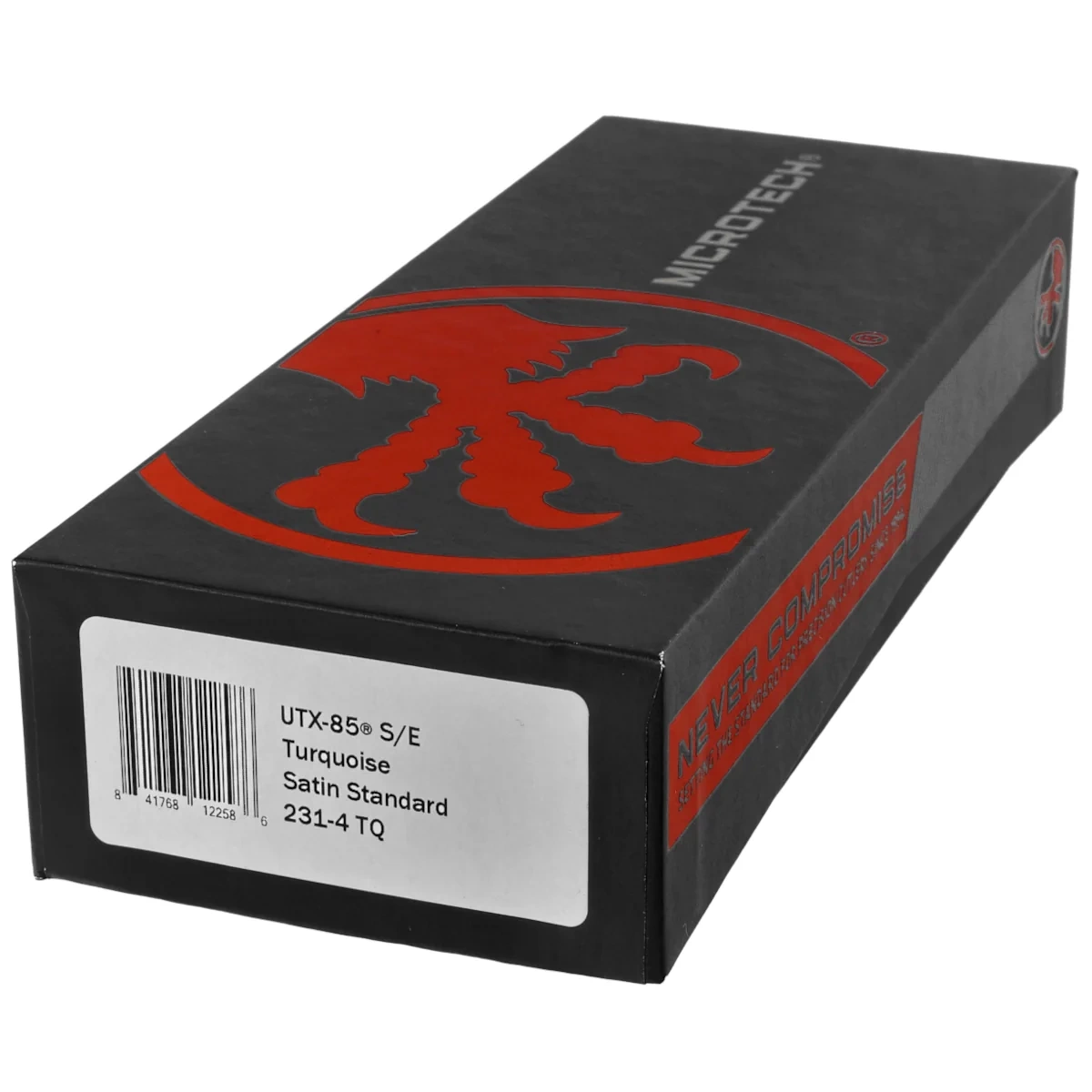 - UTX-85 S/E Turquoise Aluminium, Satin to kompaktowy nóż automatyczny OTF z serii UTX-85. Zaprojektowany do zastosowań EDC, zachowuje wszystkie zalety większych modeli. Pracujący w trybie D/A, wyposażony w szybki mechanizm wysuwający ostrze.