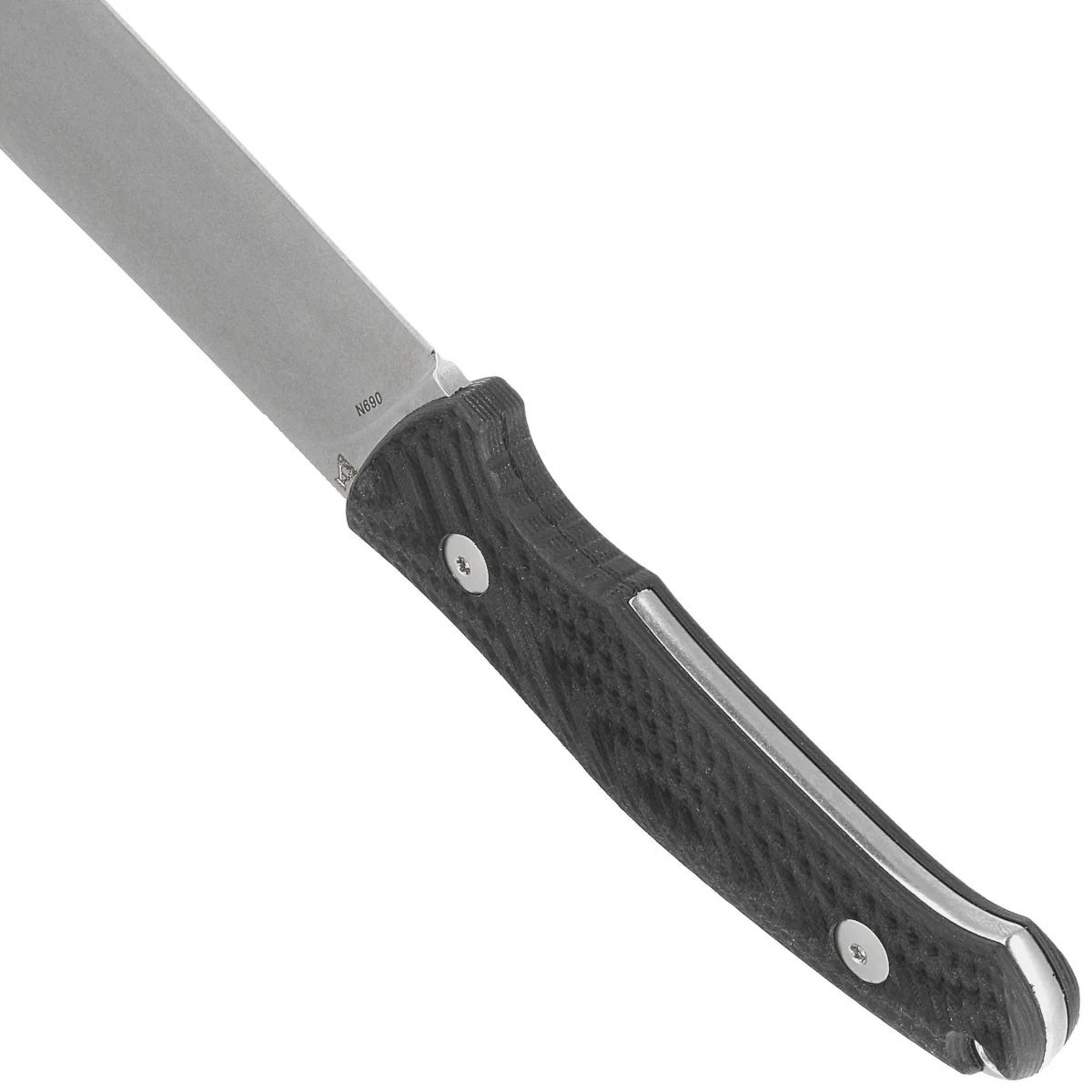 Trail Black Suretouch, Stonewashed to zaawansowany nóż terenowy, zaprojektowany przez cenionego duńskiego knifemakera, Jensa Ansø. Głownia ze stali nierdzewnej Böhler N690Co, odpornej na korozję i łatwej w ostrzeniu. Konstrukcja semi hidden tang i profil głowni gwarantuje doskonałą wytrzymałość podczas intensywnych prac terenowych. Uchwyt wykonany jest z nowoczesnego kompozytu Suretouch, który łączy właściwości gumy i laminatu. Dzięki temu zapewniona została pewność chwytu, nawet przy wilgotnej dłoni lub w rękawicy. Materiał ten jest odporny na uszkodzenia mechaniczne, działanie wilgoci oraz ekstremalne temperatury. Całość uzupełnia solidna pochwa, wykonana z naturalnej skóry. Wyposażona została w praktyczne mocowanie na pas, pozwalające na wygodne przenoszenie narzędzia. Każdy detal noża świadczy o dbałości projektanta o ergonomię, estetykę oraz solidność wykonania. Produkt doceniany jest zarówno przez kolekcjonerów, jak i użytkowników wymagających niezawodnego sprzętu.