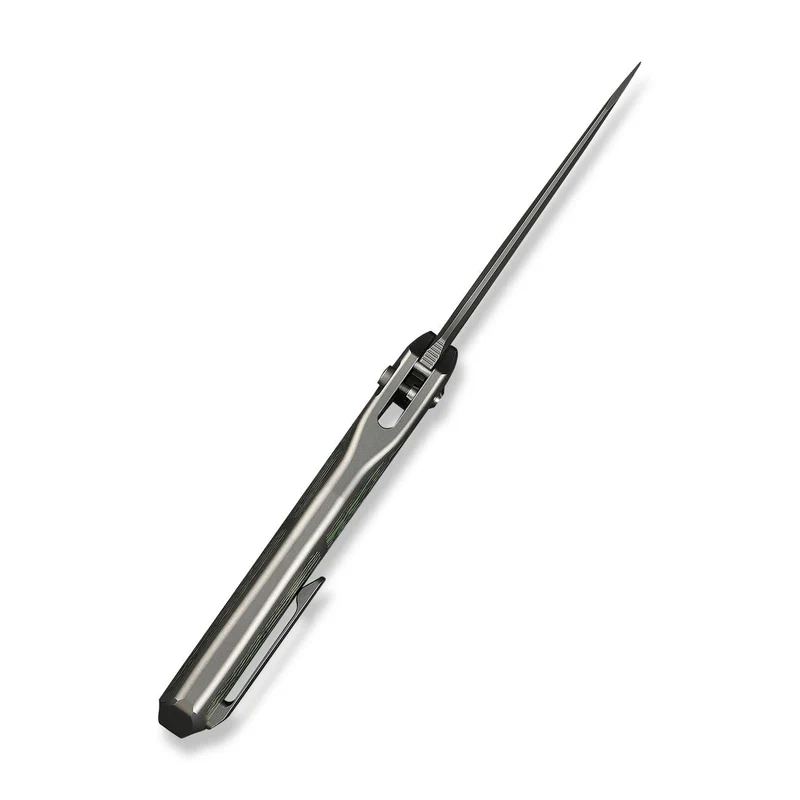 Rękojeść - to przykład zaawansowanej technologii typu integral – frezowana z jednego bloku tytanu 6AL4V. Brak łączeń zwiększa wytrzymałość konstrukcji i minimalizuje ryzyko uszkodzeń. Wstawki z kompozytu Jungle Wear Fat Carbon dodają ekskluzywności i poprawiają chwytność, zwiększając kontrolę nad narzędziem. Ergonomiczne profilowanie rękojeści dostosowuje się do kształtu dłoni, zapewniając wygodę nawet przy dłuższym użytkowaniu. Nóż wyposażono w jednopozycyjny (prawa) klips typu tip-up do dyskretnego noszenia. Mechanizm button lock gwarantuje intuicyjne i bezpieczne blokowanie ostrza, a ceramiczne łożyska kulkowe w pivocie zapewniają niezwykle płynne otwieranie. Rękojeść 702XI LE łączy luksusowe materiały, perfekcyjne wykończenie i wzorcową ergonomię – dla najbardziej wymagających użytkowników i kolekcjonerów.