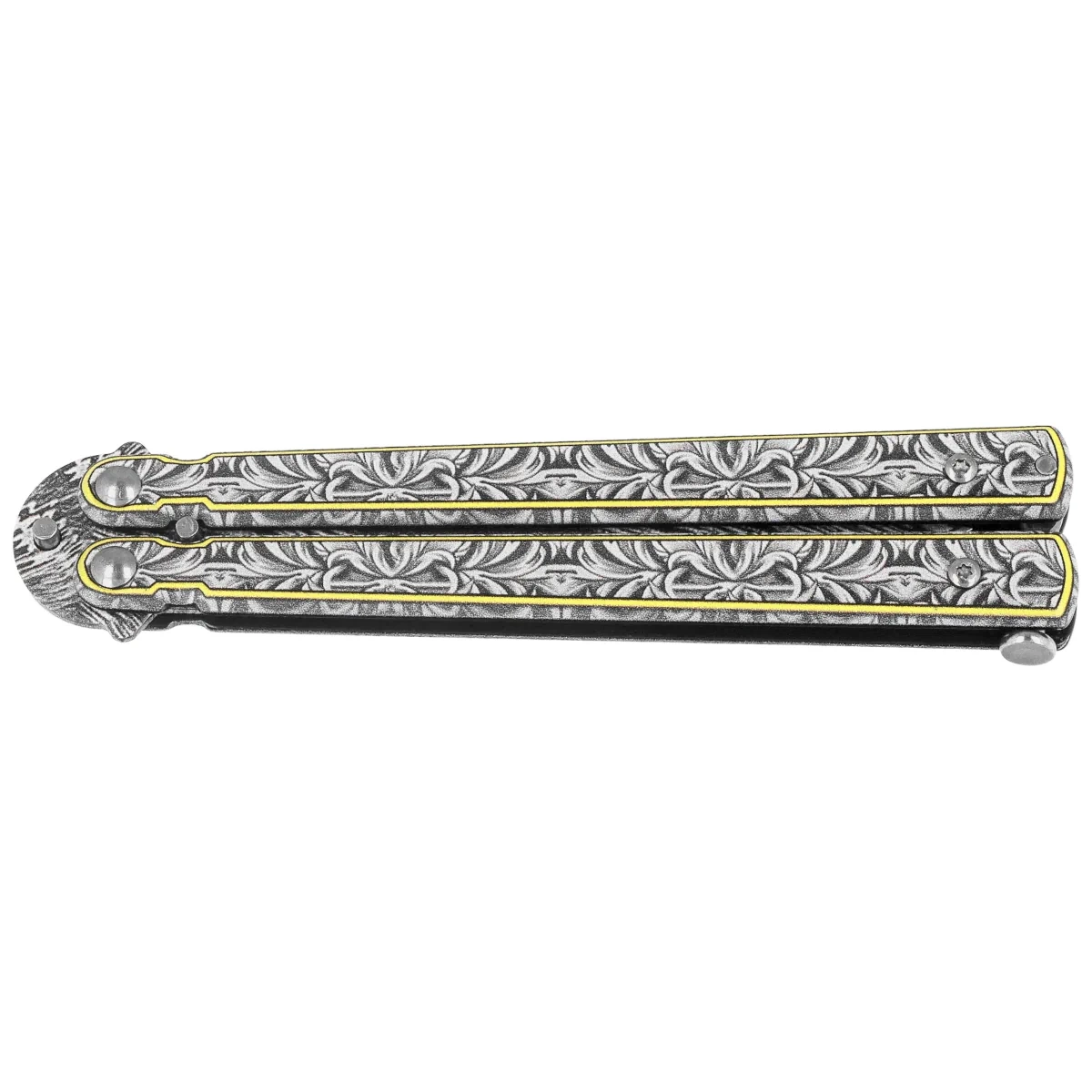 - Classic Damask Stainless Steel, Damascus Pattern – klasyczny nóż motylkowy od Martinez Albainox z głownią clip point i dekoracyjnym wzorem damasceńskim. Całkowicie stalowa konstrukcja łączy efektowny wygląd z funkcjonalnością treningową i kolekcjonerską.