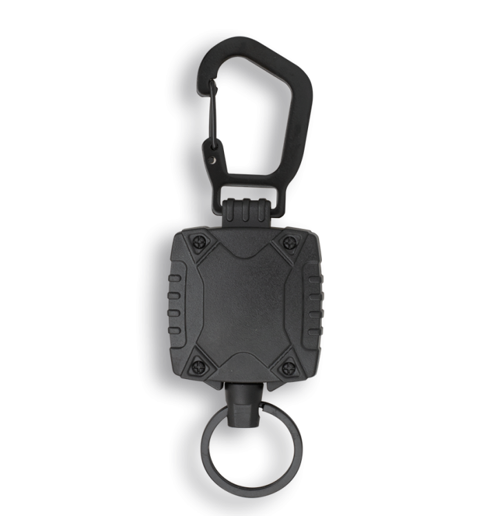 Korpus retraktora wykonany z tworzywa ABS charakteryzuje się wysoką odpornością na uderzenia oraz niewielką wagą, co ułatwia jego codzienne noszenie i użytkowanie w terenie. Ergonomiczny kształt umożliwia łatwe operowanie jedną ręką, a gładka powierzchnia nie chłonie zabrudzeń i jest łatwa do wyczyszczenia. Zwijana linka o długości 75 cm działa płynnie dzięki mechanizmowi sprężynowemu, który automatycznie przyciąga przewód po jego wysunięciu. Metalowy karabińczyk oraz plastikowy klips zapewniają wszechstronne opcje montażu, dostosowane do różnych konfiguracji sprzętu. Model 16246-VE to niezawodne akcesorium EDC, które zapewnia kontrolę nad najważniejszymi narzędziami, bez względu na warunki.