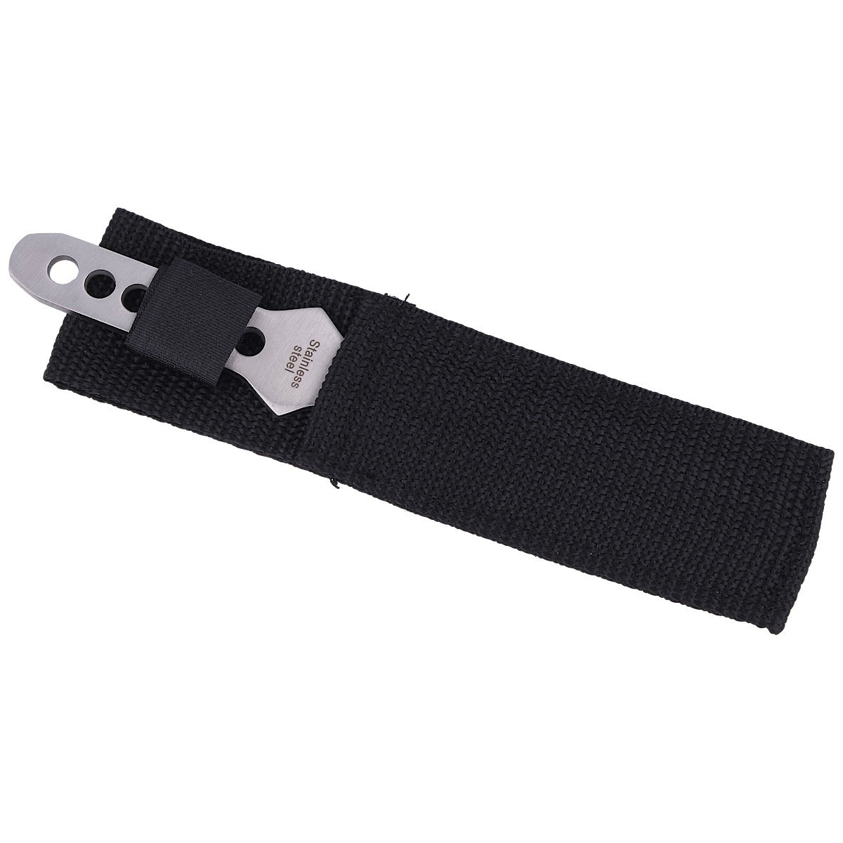 Rękojeść - zintegrowana z ostrzem jako jednolita konstrukcja stalowa, bez dodatkowych okładzin. Dzięki temu nóż zachowuje prostą, wytrzymałą formę, odporną na zużycie. Otwory w rękojeści pełnią funkcję balansu i punktów mocowania – pozwalają na personalizację chwytu lub dodanie paracordu. Gładka stalowa powierzchnia jest łatwa do czyszczenia, a symetryczny kształt wspiera efektywne operowanie nożem w różnych stylach rzutu. Dołączony pokrowiec z nylonu pozwala na bezpieczne przenoszenie narzędzia w terenie. To projekt dla osób ceniących trwałość, precyzję i minimalizm konstrukcyjny.