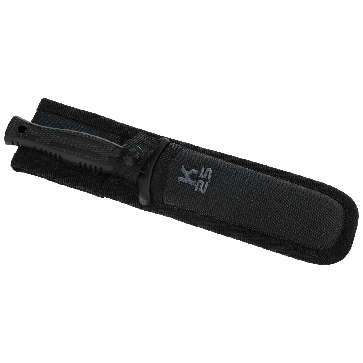 - RK-31699 Black Rubber, Black Titanium – kompaktowy nóż boot marki K25 z ostrzem typu dagger pokrytym powłoką Black Titanium i rękojeścią z antypoślizgowej czarnej gumy. Dyskretne, skuteczne narzędzie do szybkiego użycia w terenie i sytuacjach awaryjnych.
