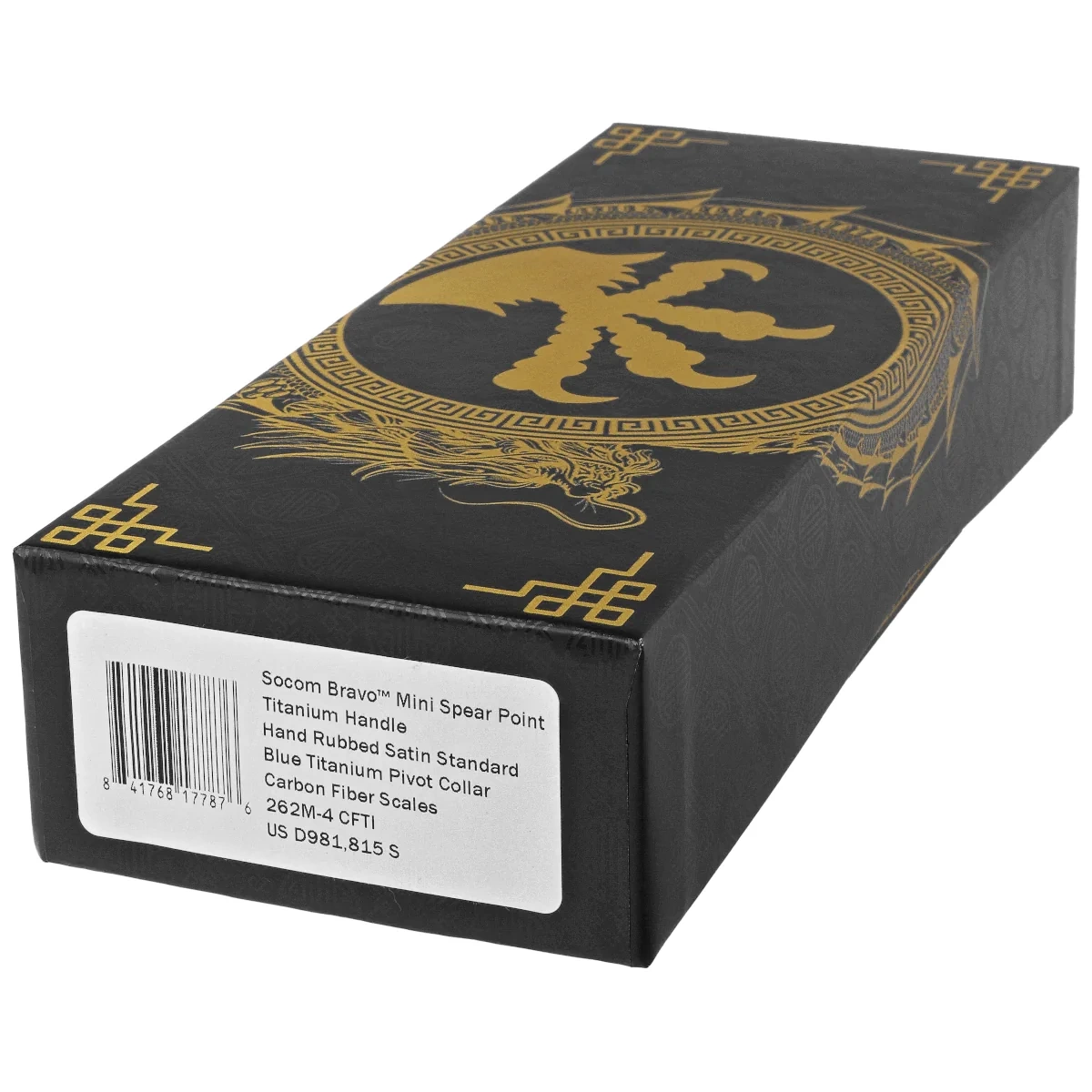 • Socom Bravo Mini SP Titanium/Carbon Fiber, Blue HW, Hand Rubbed Satin kompaktowy nóż składany, zaprojektowany tak, aby spełniać najostrzejsze wymagania operatorów jednostek specjalnych armii USA. Najlepsze materiały, niesamowita wytrzymałość.