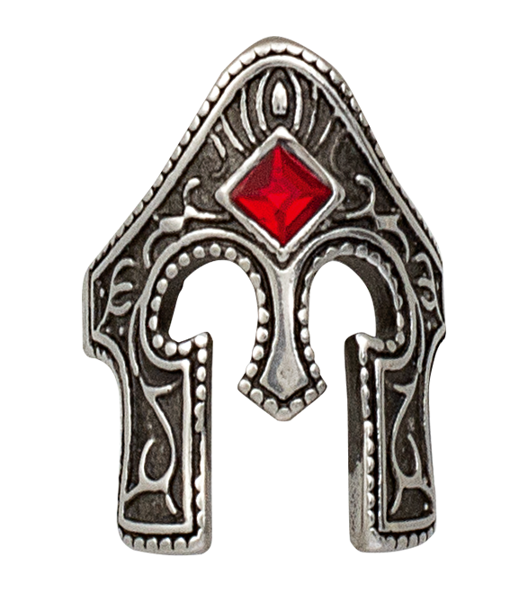 - Roman Helmet Ring Ø21 (16204-21) – stylizowany sygnet w formie hełmu rzymskiego galea z ozdobnym relefem. Wykonany z trwałego metalu w srebrnym wykończeniu z patyną. Dla pasjonatów historii i antycznej estetyki. Średnica: Ø21 mm.