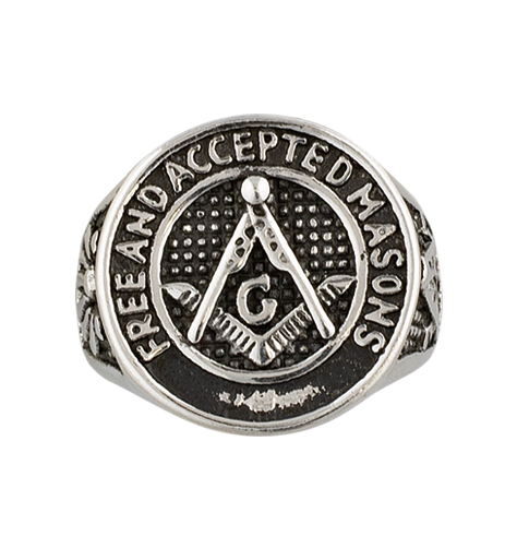 - Masons Ring Ø21 (09985-21) – wolnomularski sygnet z cyrklem, węgielnicą i literą „G”, otoczony inskrypcją „Free and Accepted Masons”. Patynowane wykończenie, rytualna symbolika i boczne detale – dla pasjonatów ezoteryki i historii masonerii.