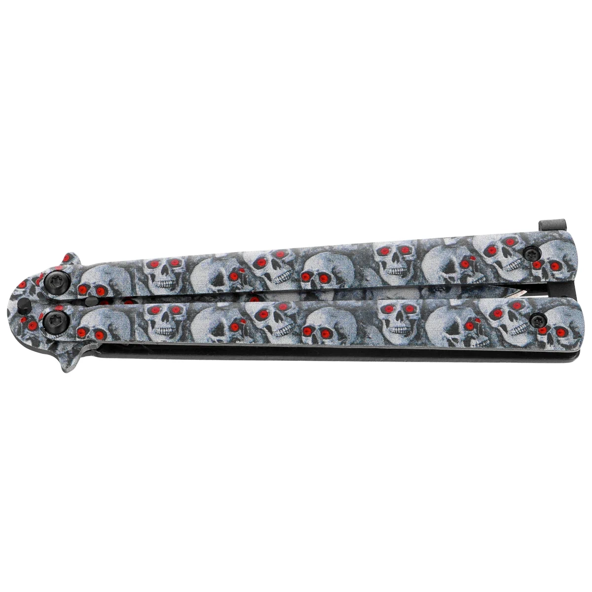 Nóż składany motylek Martinez Albainox Balisong 3D Skulls Printed Steel, 3D Skulls Printed 3Cr13Mov (02220)