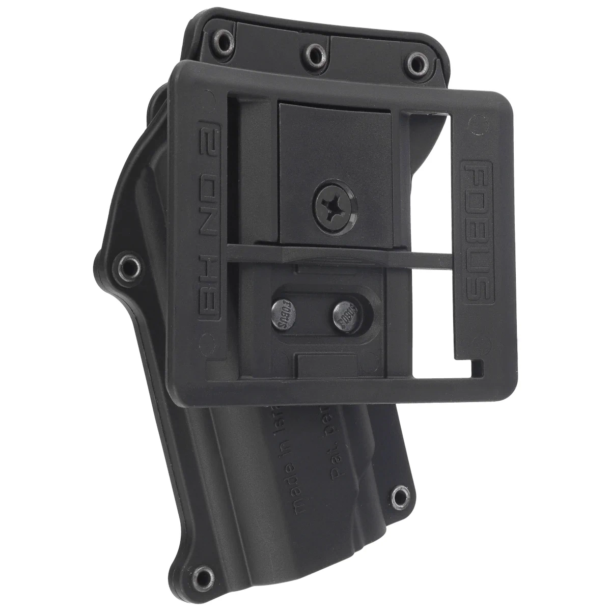 Kabura otwarta Fobus, typ Standard. Do pistoletów Colt: .45 Gov/1911 (bez szyny montażowej). Browning: Hi-Power Mark III 4 & 5mm. FN: High Power, HN Forty-Nine. Kahr: P9, T9, K9, TP9, T40, K40, MK40. Kimber: 1911 Style, 4&5 inch (bez szyny montażowej). Sasilmaz: Klinic 2000 Light. Smith & Wesson: 945. RX18 Polymer wykonana metodą wtryskową z odpornego na zarysowania, udar oraz ekstremalne temperatury tworzywa sztucznego o dużej gęstości.