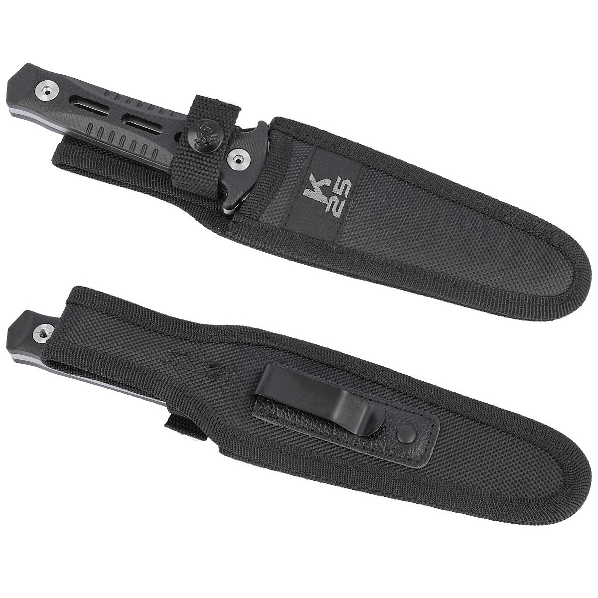 - Boot Knife Black G10, Satin – pełnowymiarowy nóż taktyczny typu dagger od K25 z głownią ze stali 7Cr17MoV wykończoną satynowaniem i rękojeścią z wytrzymałego kompozytu G10. Wyposażony w pochwę z systemem Quick Release.