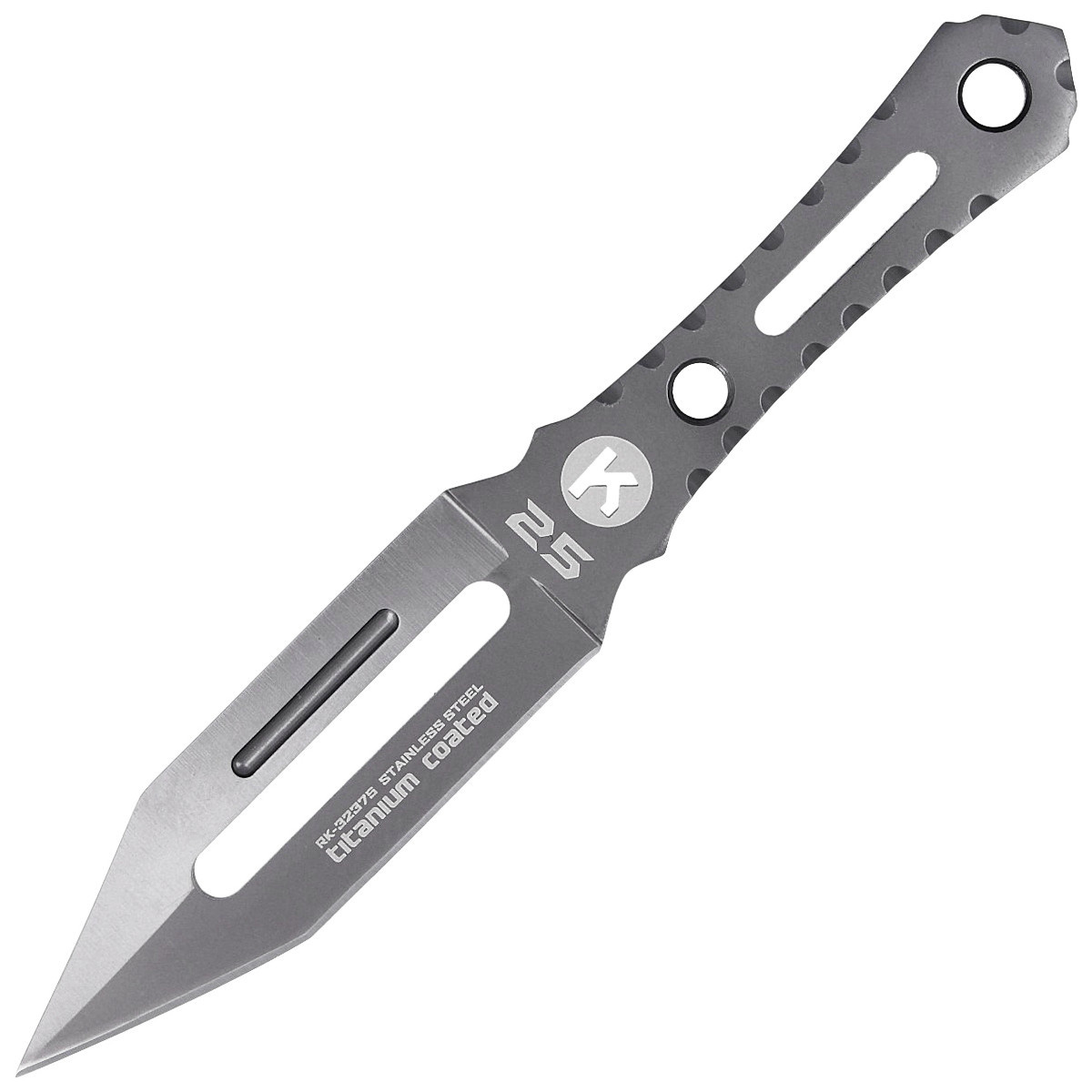 - K25 Thrower Knife Titanium 7Cr17MoV (32375) – solidny nóż do rzucania typu full-tang z wyważoną konstrukcją i ostrzem z 7Cr17MoV, pokrytym powłoką titanium coated. Precyzyjne narzędzie dla entuzjastów treningów i rekreacyjnego rzutu.