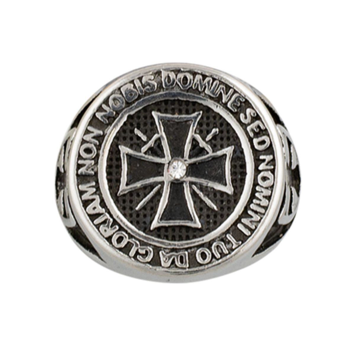 - Pierścień Tole 10 Imperial Templar Cross Ring Ø23 (09980-23) – stylizowany sygnet z emblematem krzyża templariuszy i dewizą „Non nobis Domine, sed nomini tuo da gloriam”, wykonany z polerowanego metalu. Idealny dodatek dla miłośników symboliki rycerskiej.