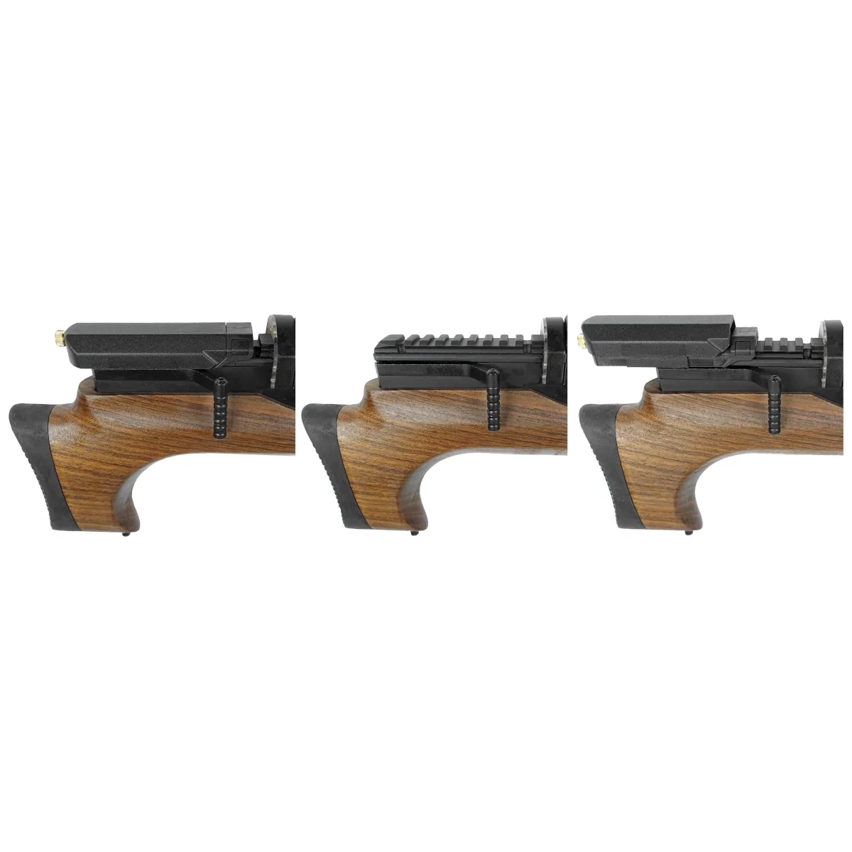 - Lyra BP 6,35 mm nowoczesna, wielostrzałowa wiatrówka PCP w układzie bullpup z dźwignią napinania Side Lever, regulowany język spustowy, osadę z wyselekcjonowanego drewna orzechowego. Dostępna w kalibrach: .177 (4.5 mm), .22 (5.5 mm), .25 (6.35 mm).