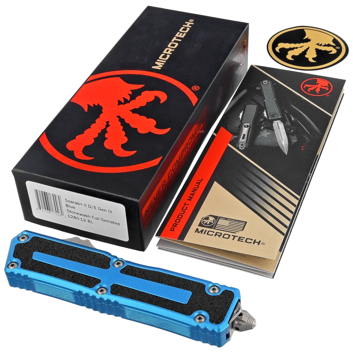 Scarab II Gen III D/E Blue Aluminium/3M, Stonewashed F/S to szczyt doskonałości w dziedzinie automatycznych noży taktycznych, czerpiący inspirację z oryginalnego projektu Microtech Ultratech. Zbudowany, aby wytrzymać najtrudniejsze warunki, nowy Scarab II jest najlepszym wyborem do intensywnego użytkowania. Zachowując cechy stylistyczne swojego poprzednika, wyznacza nowy standard dla technologii OTF (Out The Front).