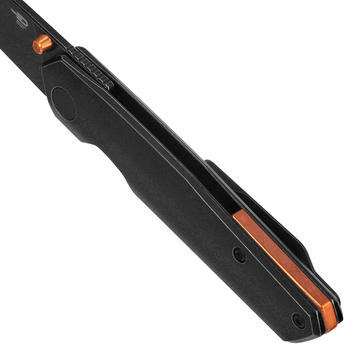 VK-Kuze Black Titanium, Black Stonewashed to rezultat współpracy między marką Bestech Knives a projektantem działającym pod pseudonimem Vulpex Knives, który zasłynął z precyzyjnych, geometrycznych projektów o wysokiej wartości użytkowej. Folder ten reprezentuje nowoczesną filozofię konstrukcyjną – opartą na czystych liniach, technicznej prostocie i dopracowanej ergonomii. Jego forma została przemyślana pod kątem codziennego użytku, oferując wyjątkowy komfort pracy oraz subtelną, industrialną estetykę. Sercem noża jest głownia ze stali MagnaCut, materiału o doskonałej równowadze pomiędzy odpornością na korozję, trwałością krawędzi i podatnością na ostrzenie. Dzięki wykończeniu Black Stonewashed powierzchni, ostrze nie tylko wygląda profesjonalnie, ale także skutecznie maskuje drobne ślady użytkowania. Geometria została zaprojektowana z myślą o precyzyjnych zadaniach cięcia w codziennym scenariuszu EDC. Rękojeść z piaskowanego tytanu podkreśla minimalistyczny charakter konstrukcji – brak ozdobników, proste linie i zintegrowany klips deep carry tworzą spójną, czystą formę. Blokada frame lock zapewnia stabilność i bezpieczeństwo nawet przy bardziej wymagających zastosowaniach. VK-Kuze to model stworzony z myślą o użytkownikach, którzy szukają praktycznego noża premium w nowoczesnym, inżynierskim stylu.