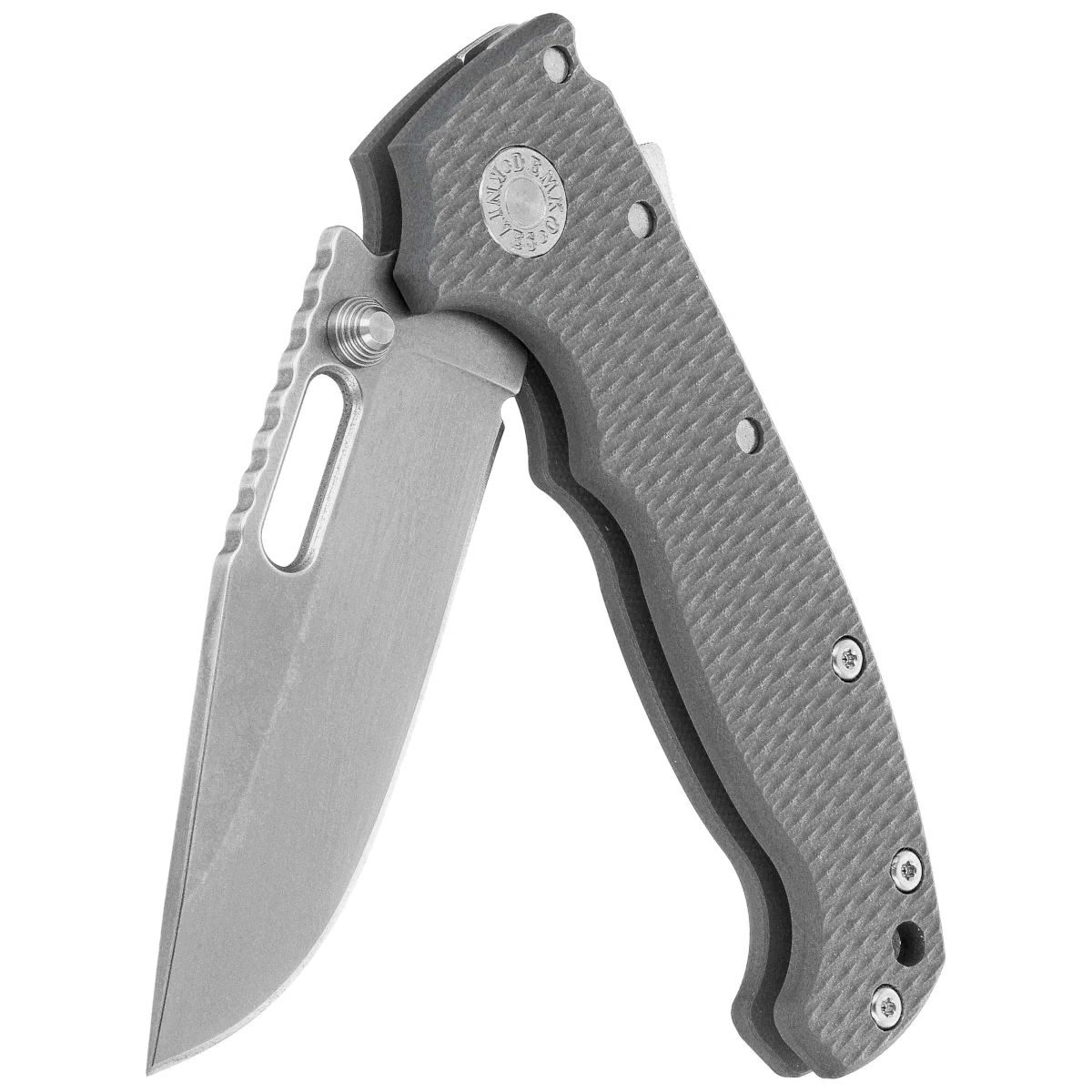 Rękojeść frezowane okładziny z kompozytu G10, wyróżniające się lekkościąsztywnością i odpornością na warunki zewnętrzne. Wyczuwalna tekstura i profilowane podcięcia wspierają pewny chwyt, także w rękawicach. Stalowe tuleje dystansowe zwiększają sztywność całej konstrukcji, a klips deep carry umożliwia wygodne i dyskretne przenoszenie w kieszeni. Dodatkowo w zestawie klips na lewą stronę, dla osób leworęcznych. Elementy montażowe w systemie Torx upraszczają demontaż i serwisowanie noża. Shark-Lock™, umieszczony w górnej części rękojeści, działa błyskawicznie, zapewniając pełną kontrolę i bezpieczeństwo, niezależnie od preferowanego chwytu czy dominującej ręki.