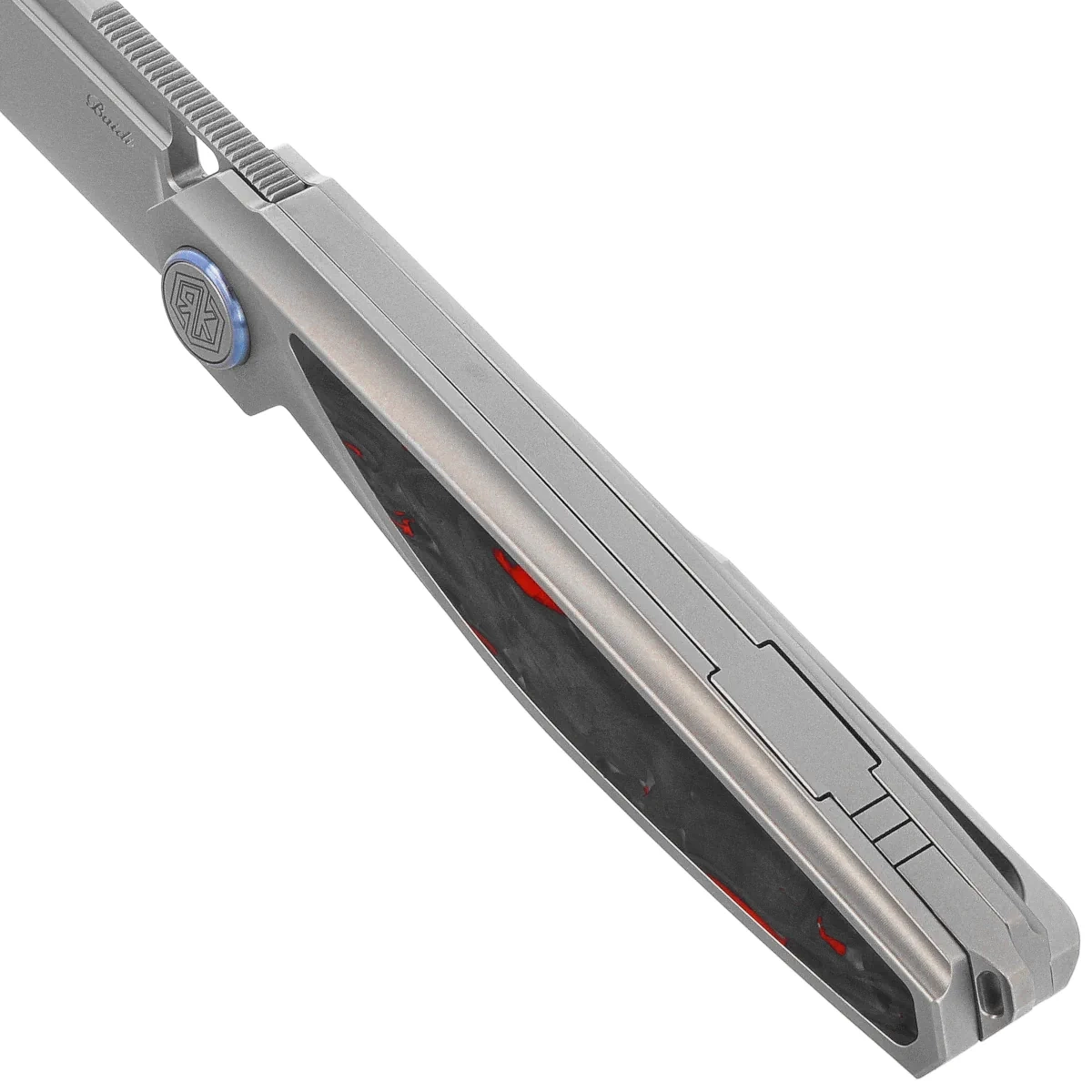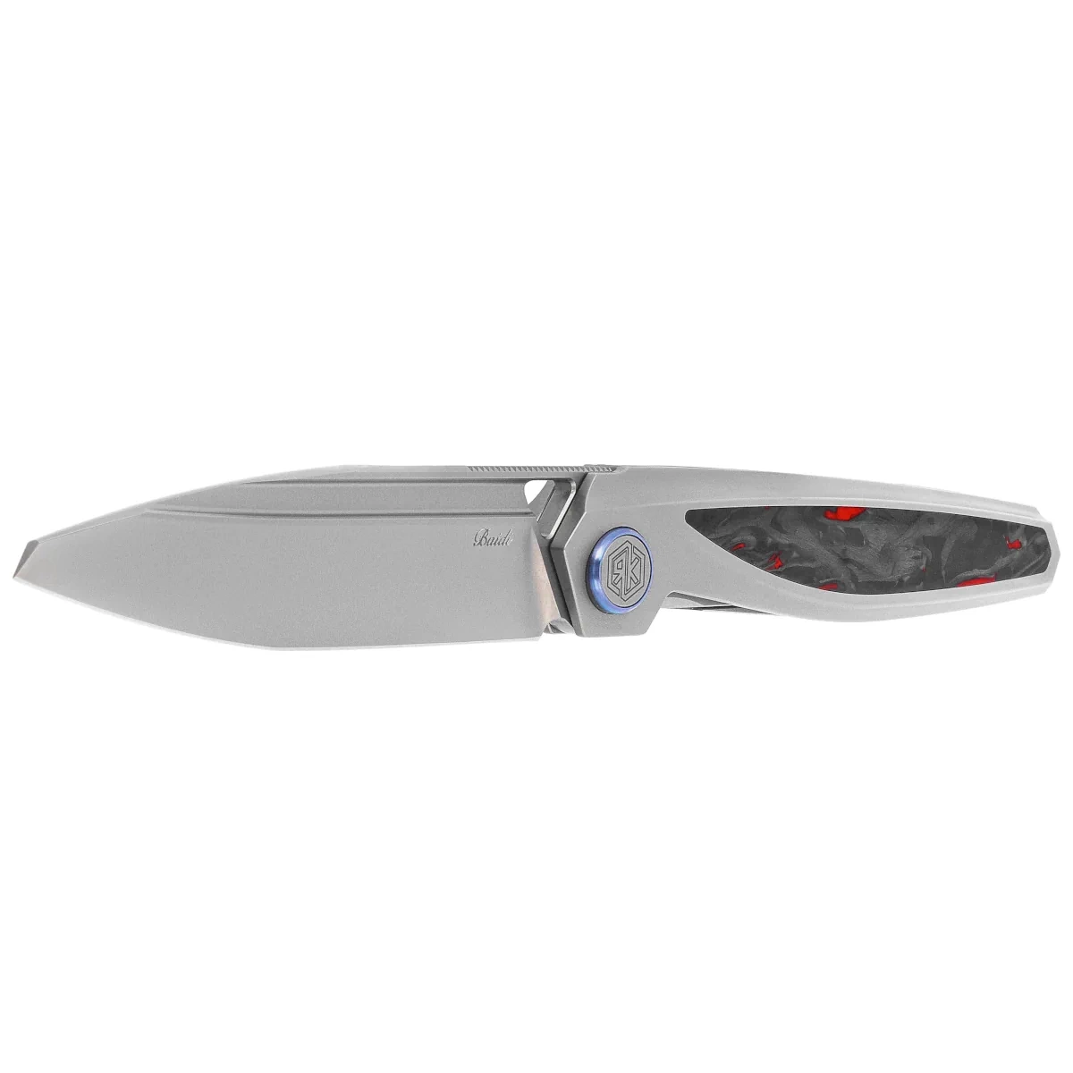 - Baidi T Titanium/Red Carbon Fiber, Bead Blasted, nóż składany klasy premium, łączący ostrze ze stali M390 z konstrukcją opartą na tytanowym szkielecie i okładzinach z tytanu i kompozytu Carbon Fiber. Perfekcja, wyrafinowany styl i funkcjonalność EDC.