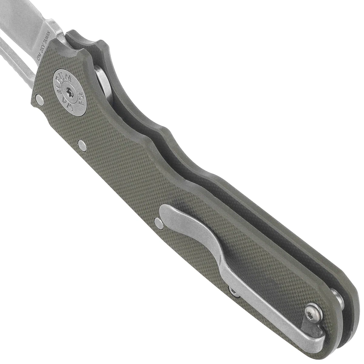 Rękojeść - okładziny z G10 oferują trwałość i niską masę, a ich teksturyzowana powierzchnia i fazowane krawędzie poprawiają chwyt i komfort obsługi. Ergonomiczne wycięcia pod palce wspierają kontrolę nad ostrzem podczas precyzyjnych zadań. Model wyposażono w klips deep carry, umożliwiający dyskretne przenoszenie w pozycji tip-up po lewej lub prawej stronie. Wewnętrzne stalowe linersy wzmacniają całą konstrukcję, a konstrukcja open back z tulejami dystansującymi ułatwia utrzymanie czystości. To praktyczne, a jednocześnie wyrafinowane narzędzie dla najbardziej wymagających użytkowników noży EDC.