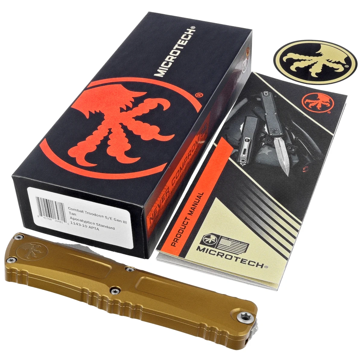 Nóż automatyczny OTF Microtech Combat Troodon Gen III S/E Tan Aluminium, Apocalyptic M390MK by Tony Marfione (1143-10APTA)