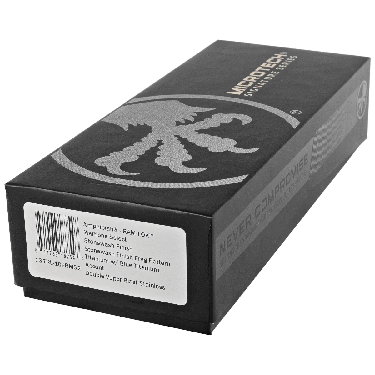 Nóż składany Microtech Marfione Select Amphibian Ram-Lok S/E Signature Stonewashed Frag Pattern Titanium,Blue HW, Stonewashed M390MK by Tony Marfione (137RL-10FRMS2)