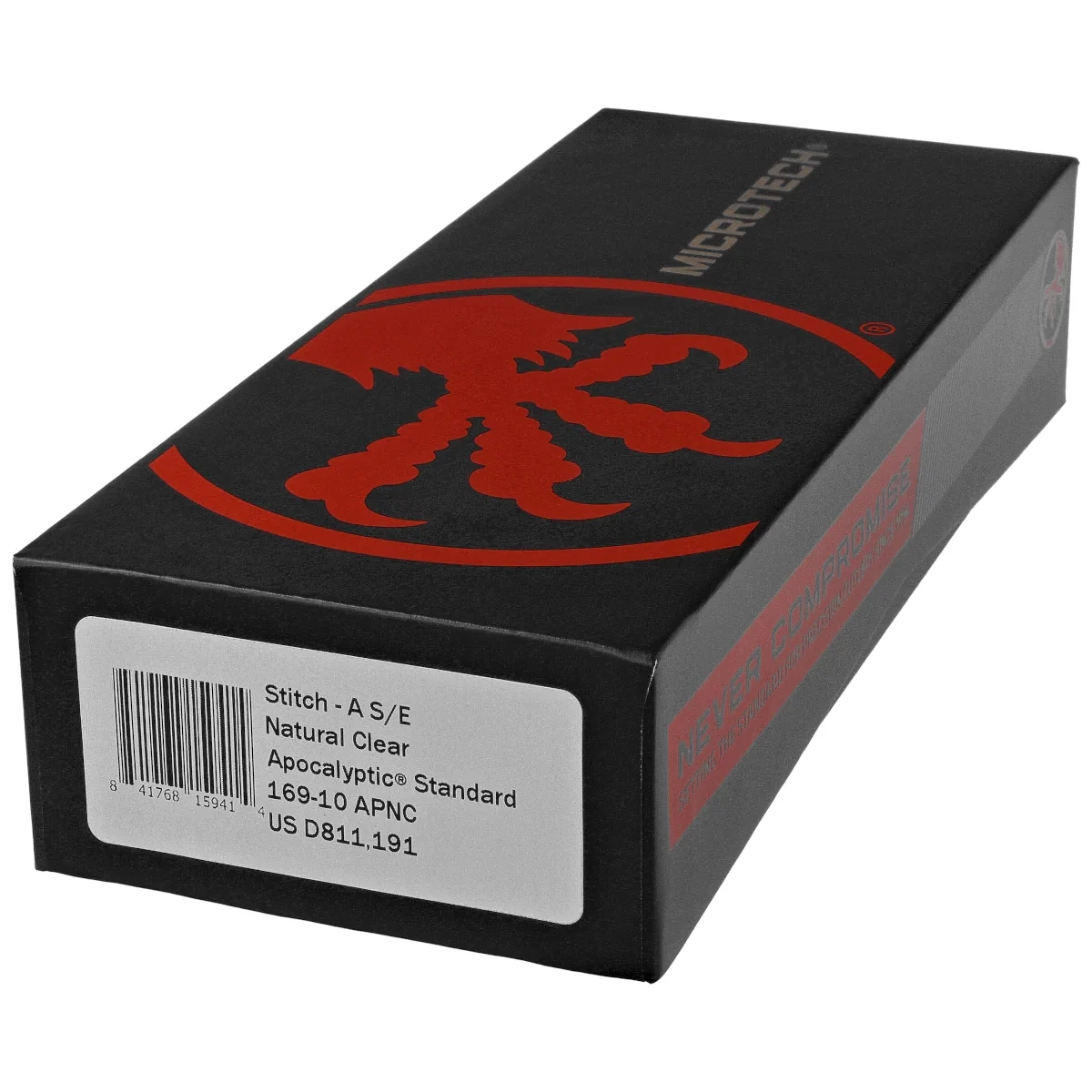 Stitch-A S/E Natural Clear Aluminium, Apocalyptic automatyczna wersja śmiałego projektu wszechstronnego noża taktycznego, efekt współpracy Sebastijana Berenji i firmy Microtech. Szeroka głownia i prosta, wygodna w każdym chwycie rękojeść dają mocny nóż taktyczny wykonany z dbałością o najdrobniejsze szczegóły i z najlepszych materiałów. Wierny towarzysz, który nigdy nie zawiedzie